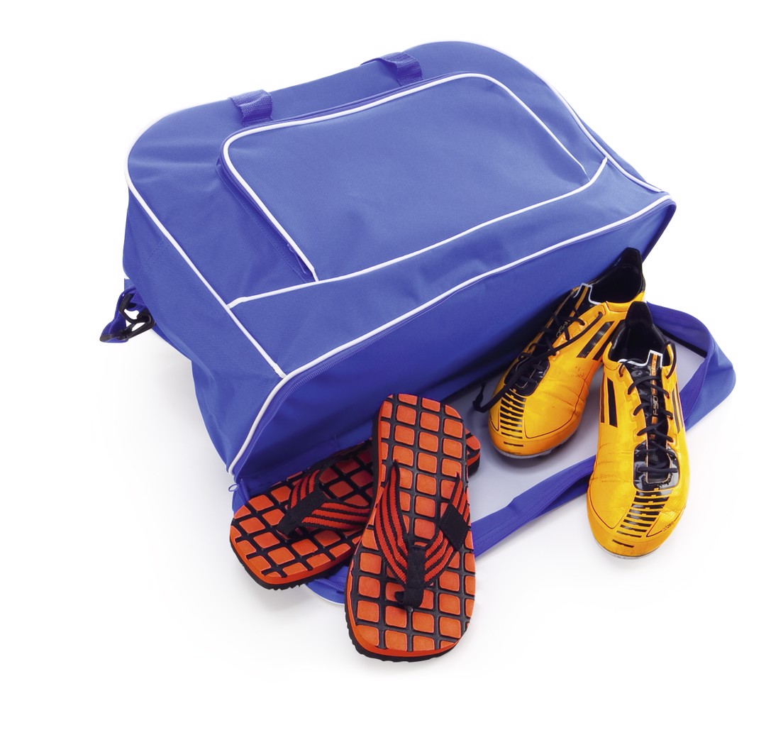 Multi purpose bag in resistant 600D polyester, bold design in bright tones and matching color accessories. Compartment with zipper closure for footwear, with reinforced white piping. Main compartment with zipper closure, reinforced carrying handle with velcro closure and front pocket with zipper closure. Adjustable shoulder strap with double carabiner closure and shoulder pad. Reinforced base with non-slip rubber feet. Shoes Compartment