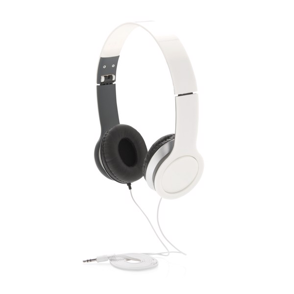 Foldable and lightweight headphone with audio 3.5mm jack that can be used on any mobile phone, computer or laptop. Made out of ABS plastic and packed in colour gift box.