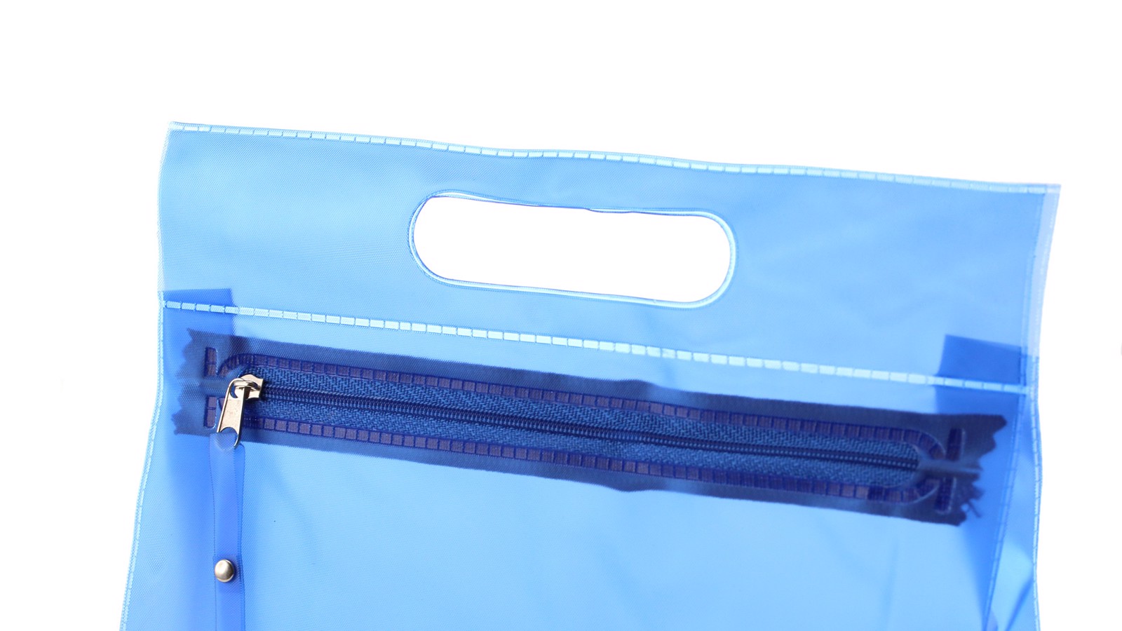 Multi purpose beauty bag in resistant translucent PVC of varied range in bright tones. With resistant die-cut handle and matching color zipper closure, with puller strap for easy opening.