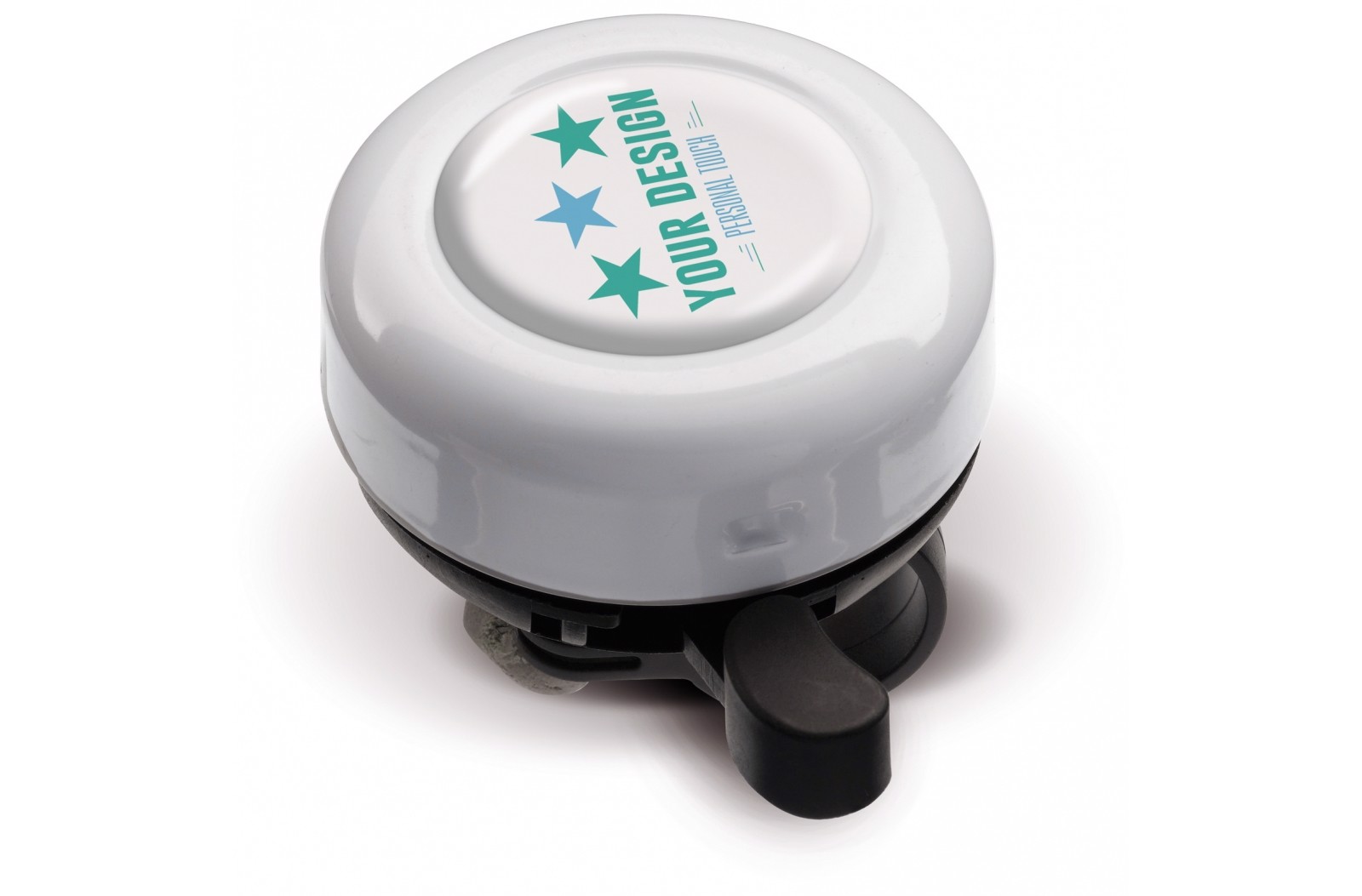 Metal bell on a plastic holder. Top with cut out for doming.