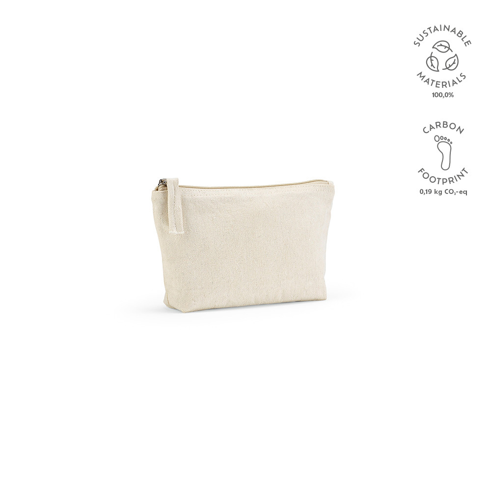 Cairo S 320 gsm recycled cotton toiletry bag (1.1L). Featuring a spacious main compartment for efficient storage and a secure zipper closure, it seamlessly combines eco-friendliness with practicality, ensuring your journey is both organized and environmentally conscious