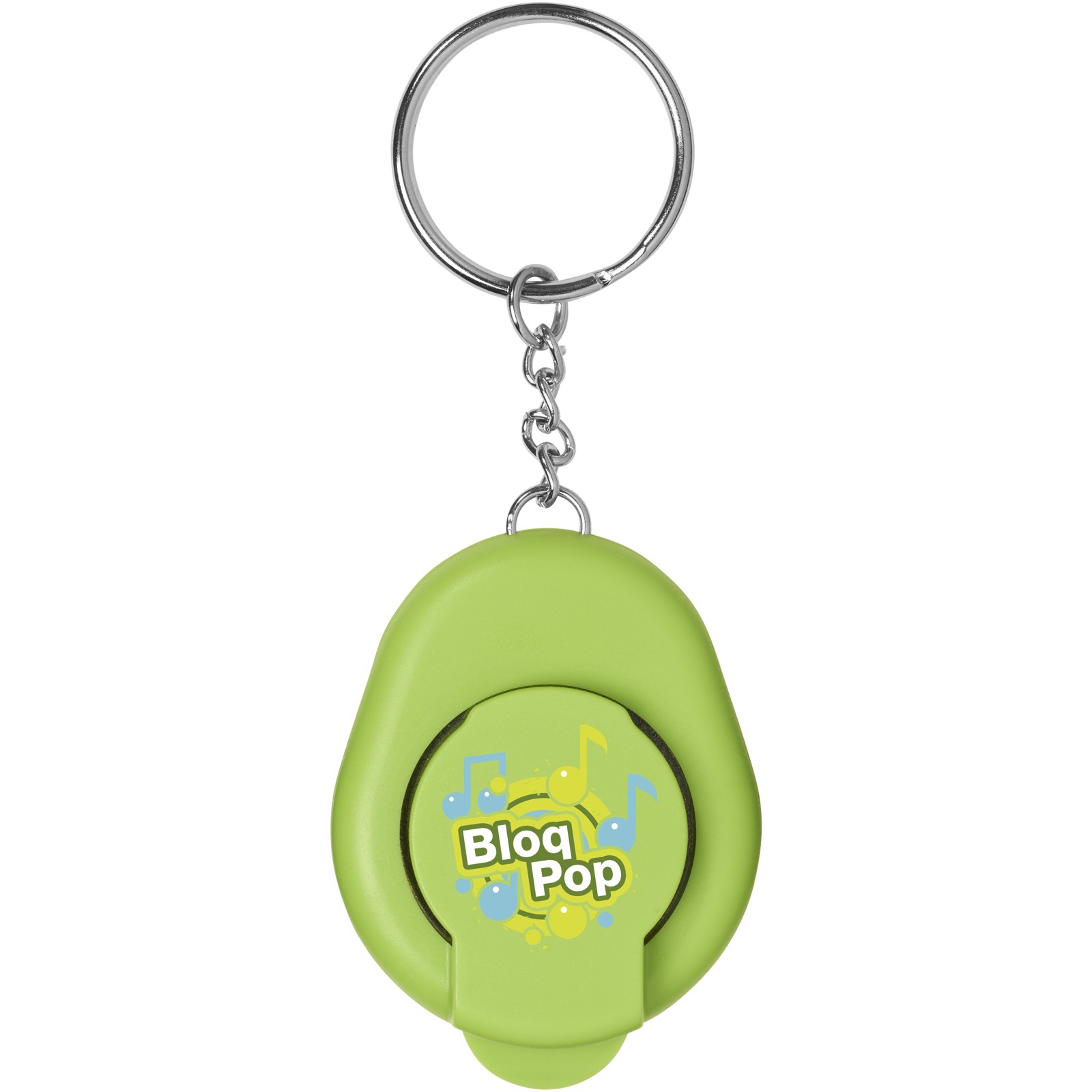 Handy opener for bottles and cans. Includes clip and split keyring.