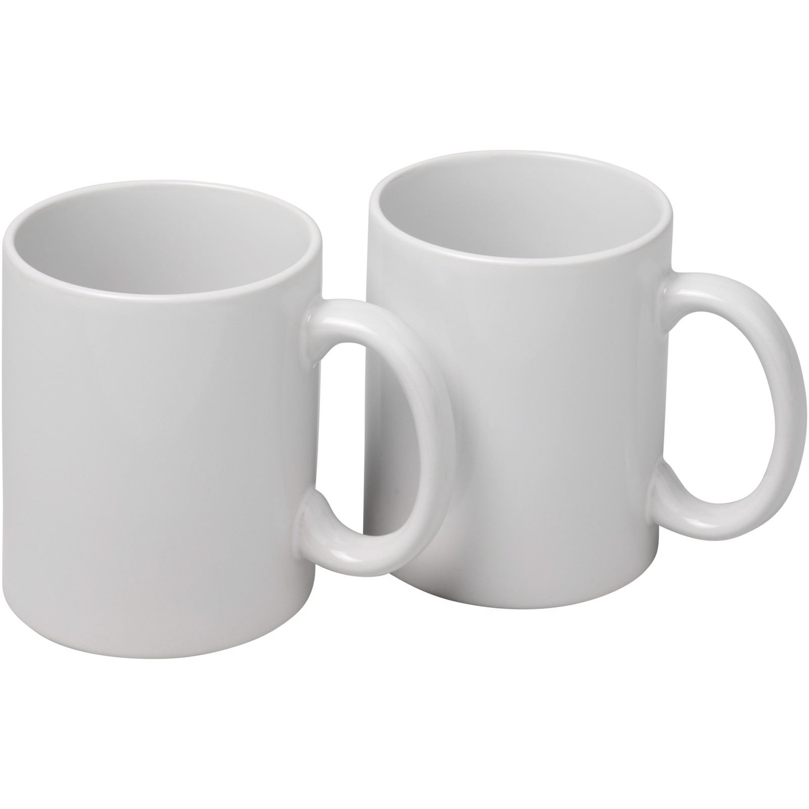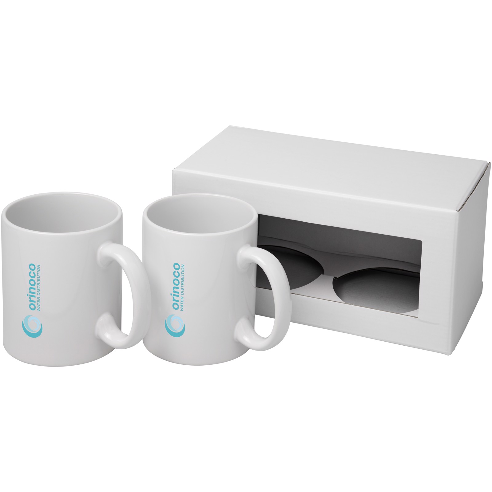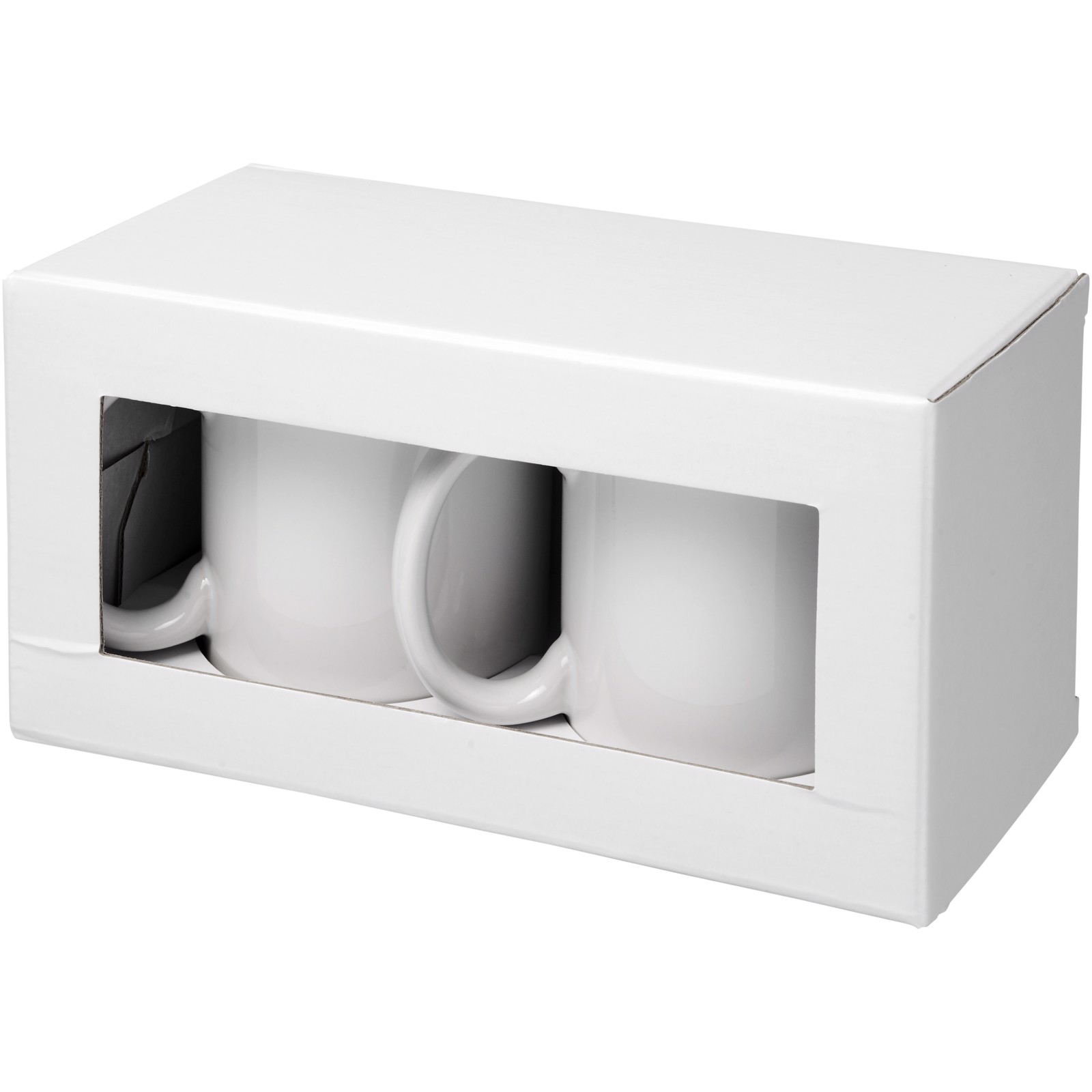 Gift set of two ceramic 330 ml mugs. Presented in a white gift box with see-through window.