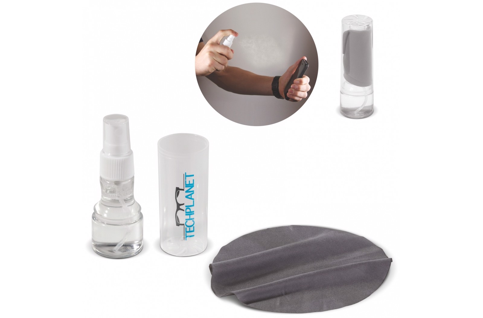 Dispenser with cleaning fluid (30ml) for glasses, screens, mobile phones and tablets. Due to the size, it is easy to take with you. Dispenser will be delivered with a microfiber cloth.