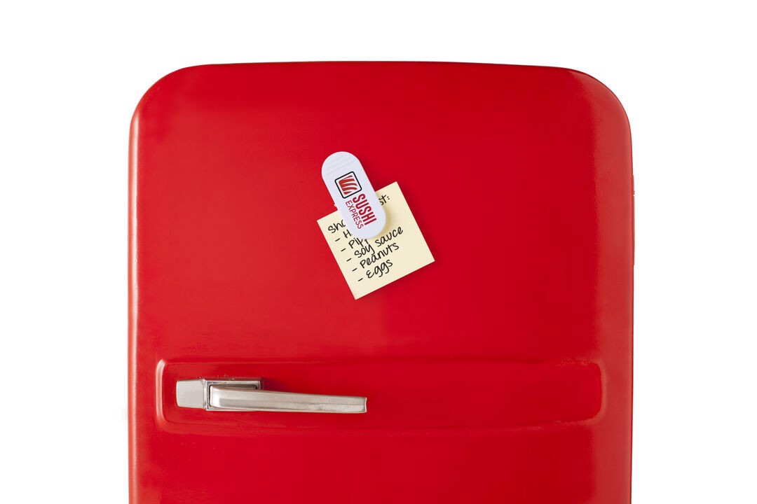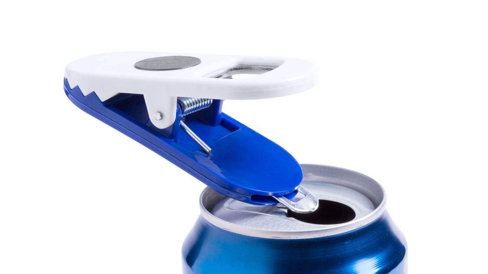 Magnetic clip opener with resistant body in bicolor design. In assorted colors and with a metal piece for opening. Magnetic