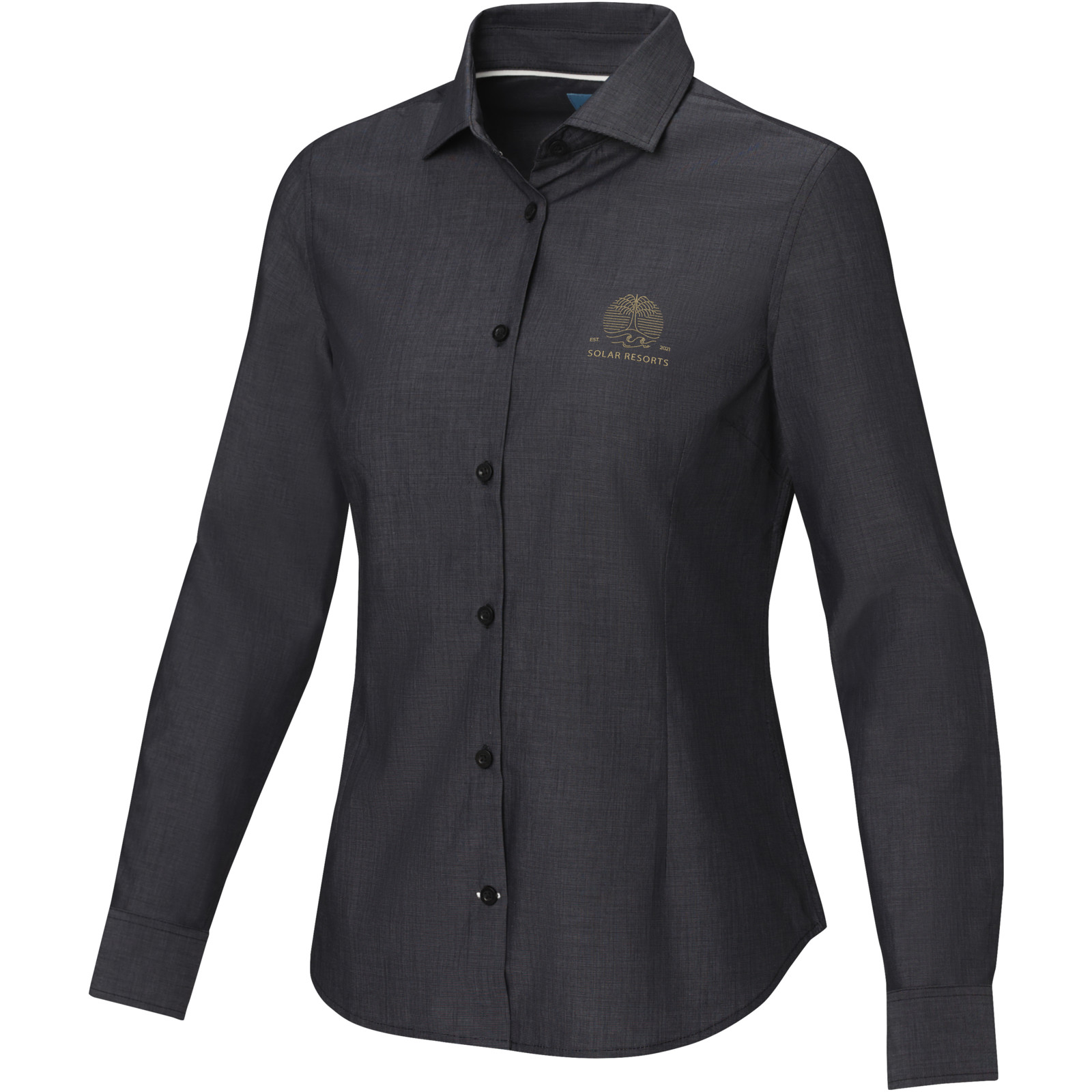 The Cuprite long sleeve women's organic shirt – a sustainable and stylish choice. Made from organic cotton poplin, this shirt combines ethical manufacturing with exceptional comfort. It features a semi-spread collar that offers a more relaxed and versatile look. The contrast-coloured stitching on the sleeve placket and bottom buttonhole placket adds a subtle pop of style. This shirt is designed with a fitted shape for a feminine look.