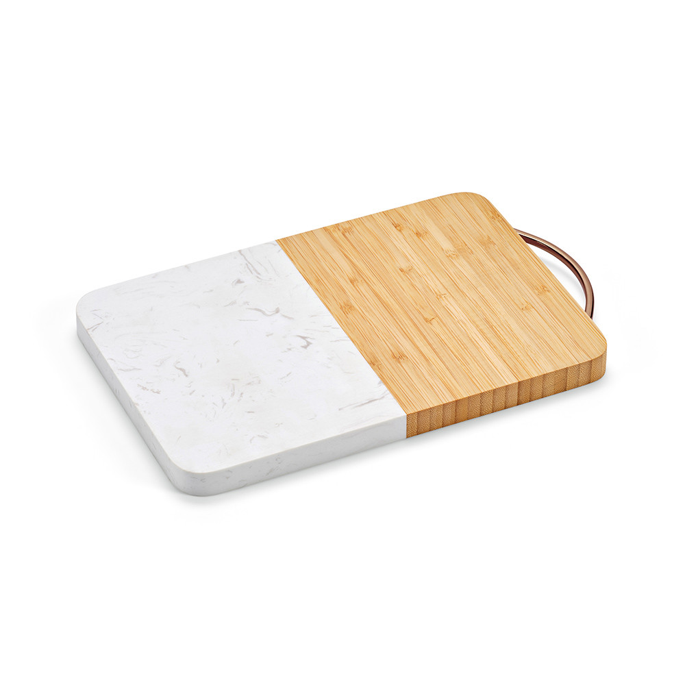 Degas Board. Dimensions 20x30x2cm with a top handle. The board is a unique blend of marble and bamboo and is ready to elevate your dining experience. Packed in an individual kraft box.
