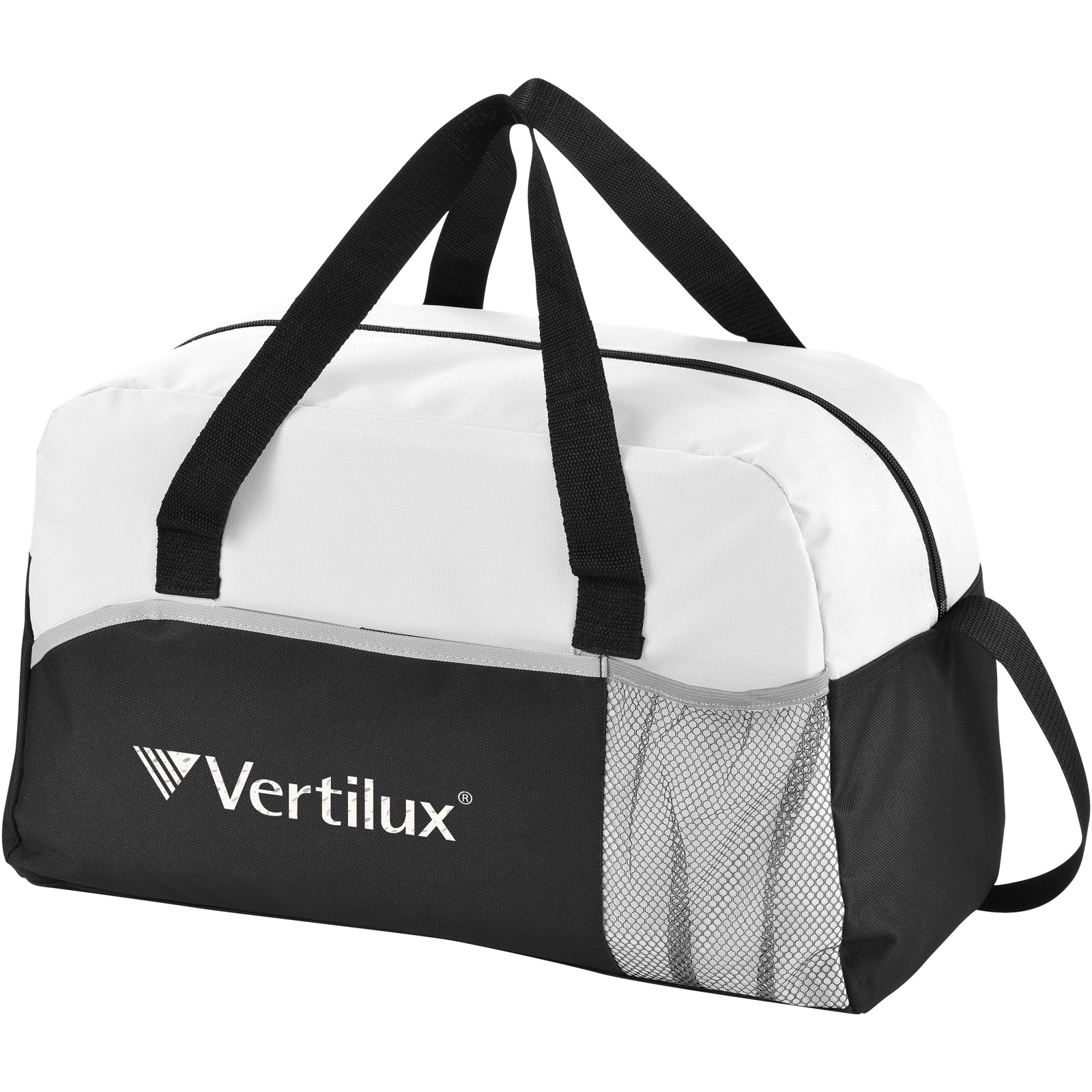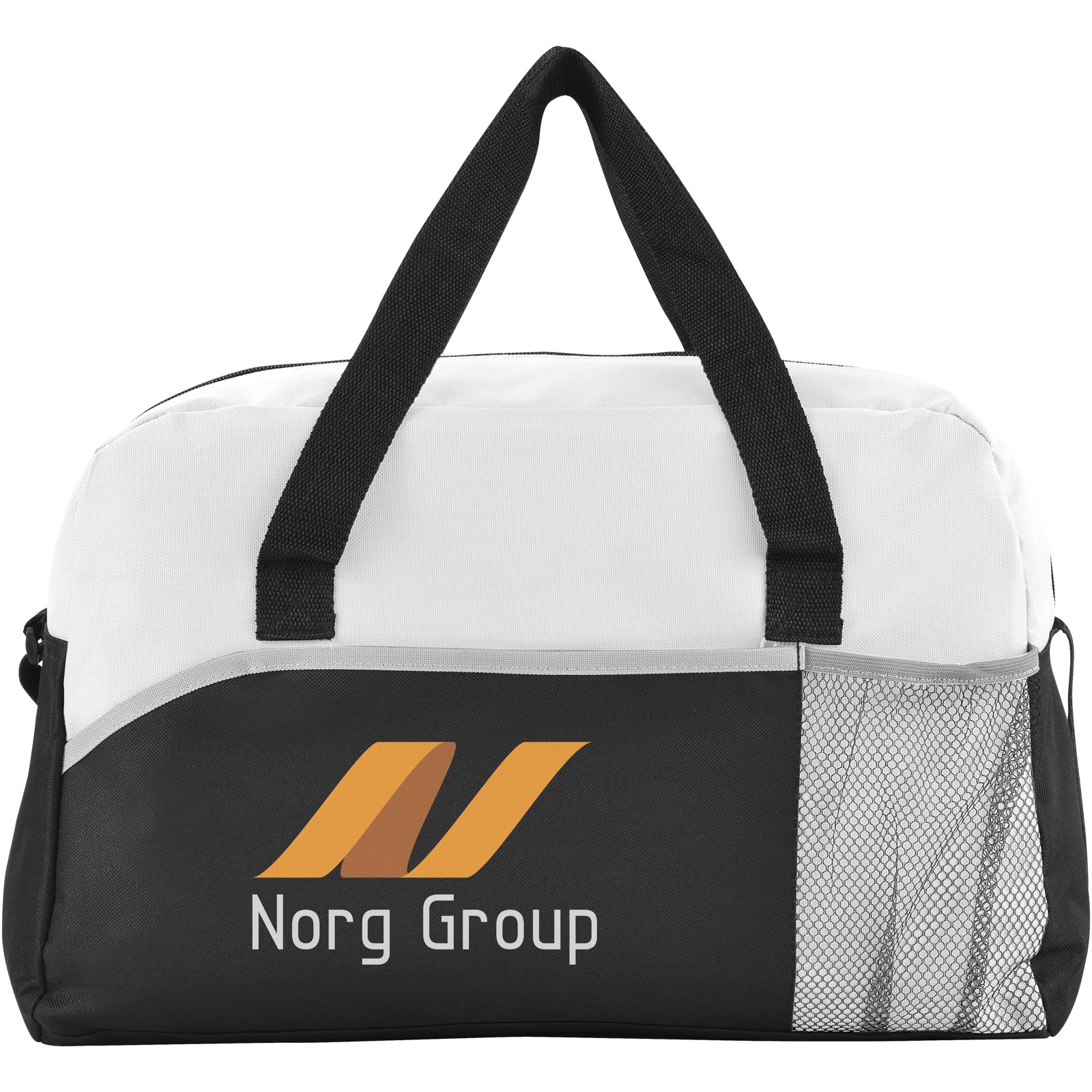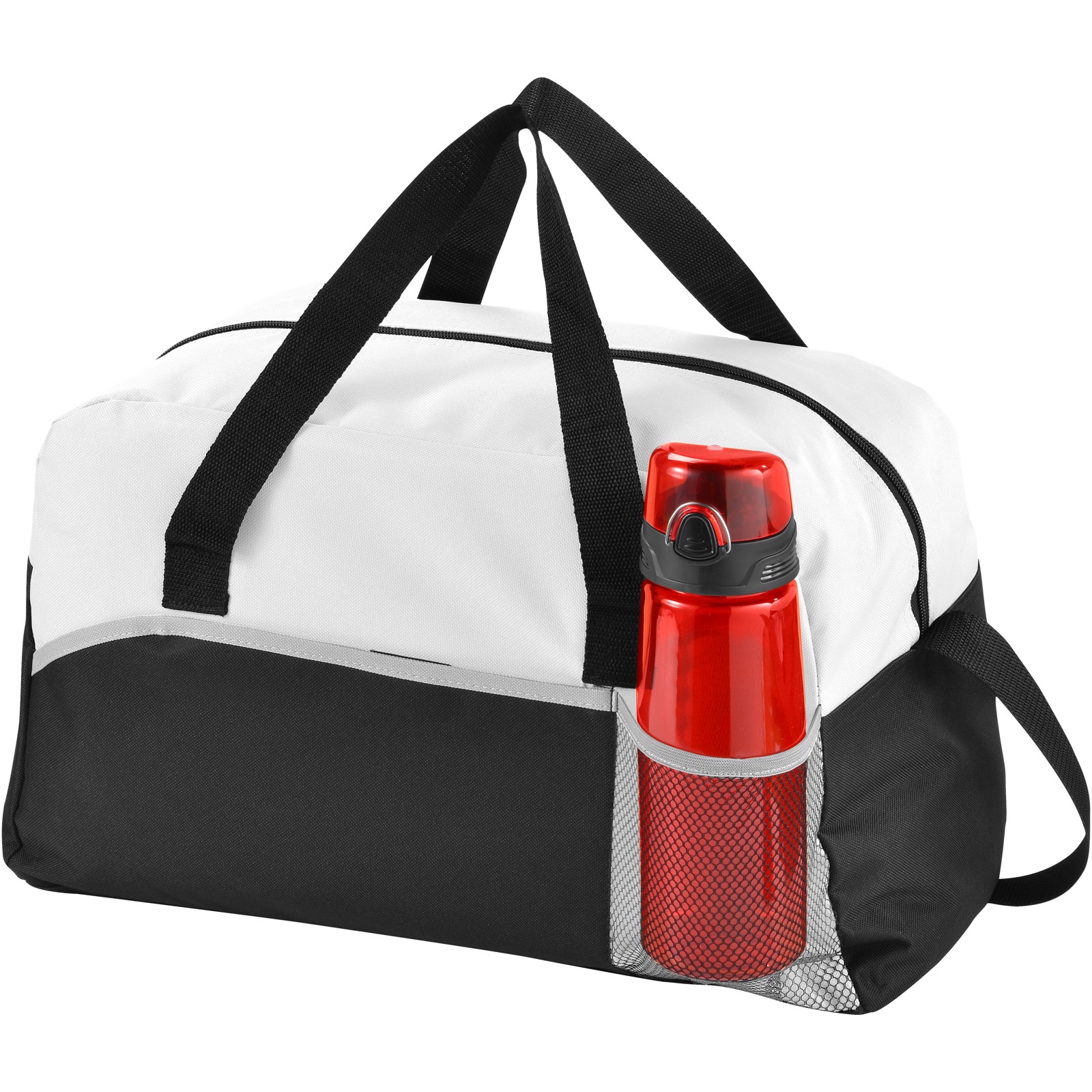 Energy duffel bag. Zippered main compartment. Front pocket with hook & loop closure. Front mesh pocket to store a bottle. Double reinforced carry handles. Adjustable shoulder strap. Accessoires not inlcuded. 600D Polyester, Non-woven 80 g/m² PP Plastic.