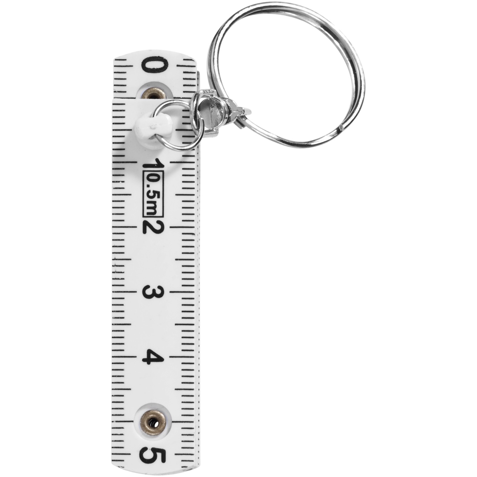 Double side printed ruler with 50 cm. on one side and 20 inches on the other side. Devided in several foldable piece. Split metal key ring.
