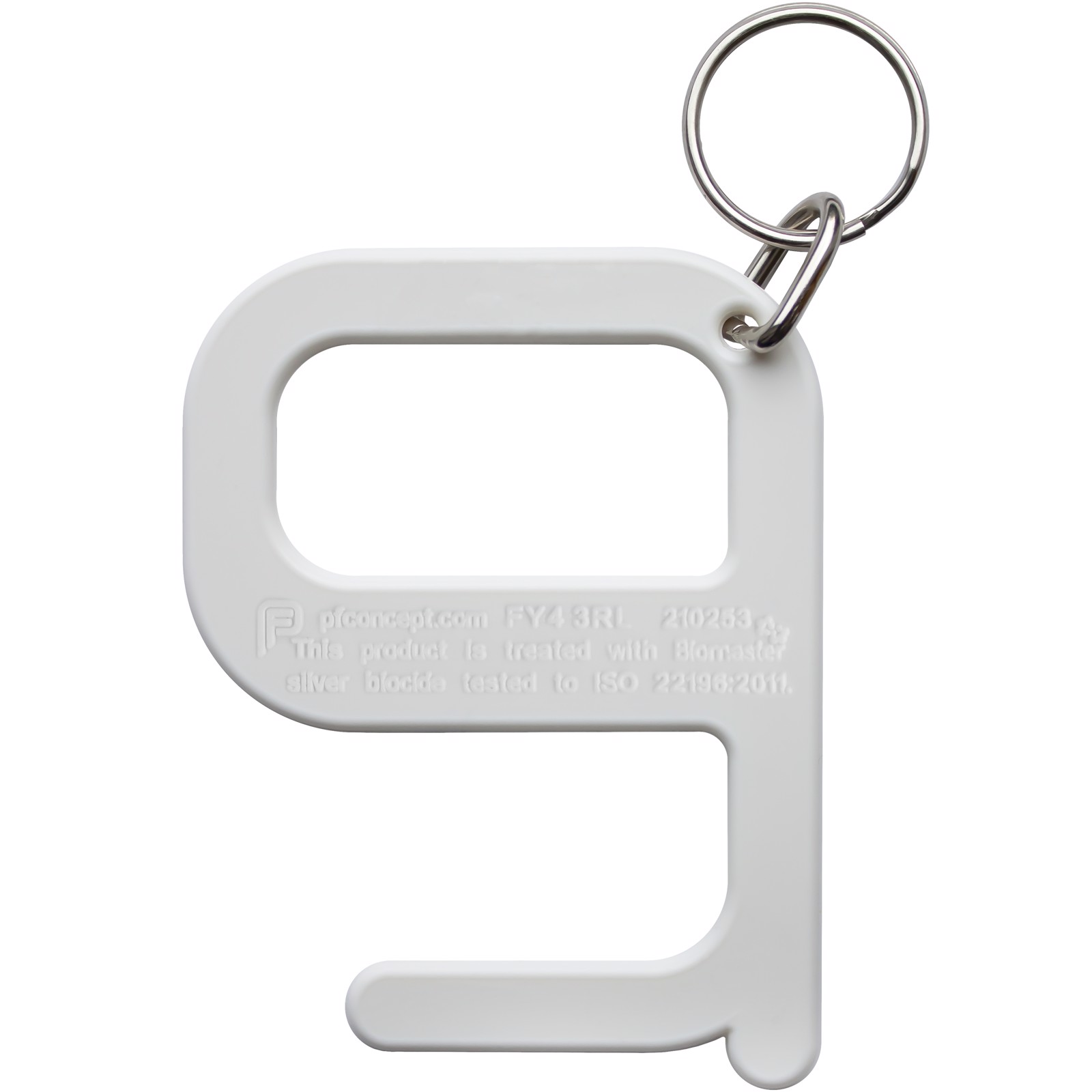 A simple but effective hygiene tool that allows the user to open doors and push buttons without any direct contact with hands. Manufactured from strengthened materials for extra durability. This product contains Biomaster antimicrobial technology that provides protection against the growth of harmful micro-organisms for the lifetime of the product. Supplied as a keychain.