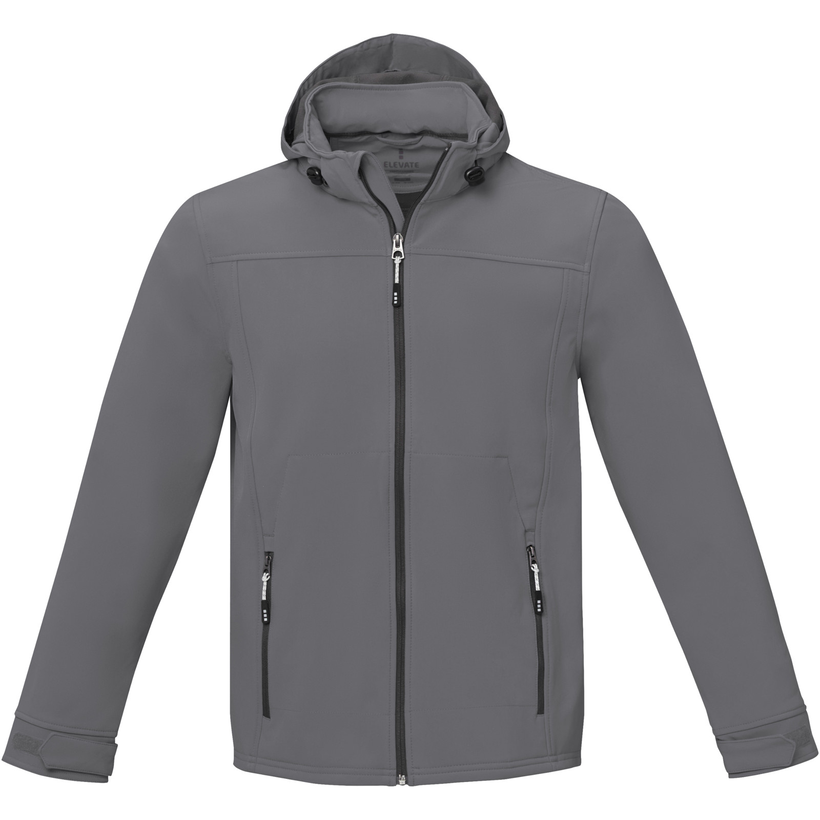 The Langley men's 2-layer softshell jacket – for ultimate outdoor performance. The jacket has a waterproof rating of 5000 mm, keeping you dry and shielded from the elements. Its exceptional breathability, with a rating of 3000 g/m², wicks away moisture, keeping you comfortable during intense activities. Enjoy unrestricted movement with the four-way stretch fabric, combining polyester and elastane (300 g/m²) designed to flex and adapt to your body's every motion. The bonded inner layer features a micro fleece made of polyester, complemented by TPU lamination, which enhances the jacket's insulation and warmth and protection to any type of weather. The detachable hood adapts to various weather conditions, while the adjustable cuffs with hook and loop closure guarantee a tight and comfortable fit. The elastic drawstring with an adjustable cord lock allows to tailor the jacket to any preference. With the inclusion of secure hand pockets with zippers, you can keep your essentials close at hand during any adventure. Be ready to take on any adventure in style, comfort, and confidence with the Langley softshell jacket.