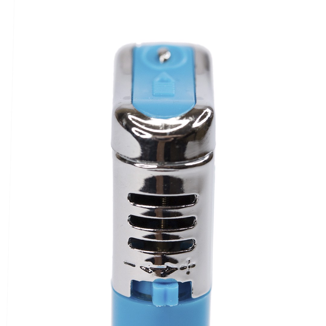 Rechargeable gas lighter with electric mechanism in a varied range of bright neon colors. With flame regulator and child protection. Supplied in boxes of 50 pieces of same color. Refillable