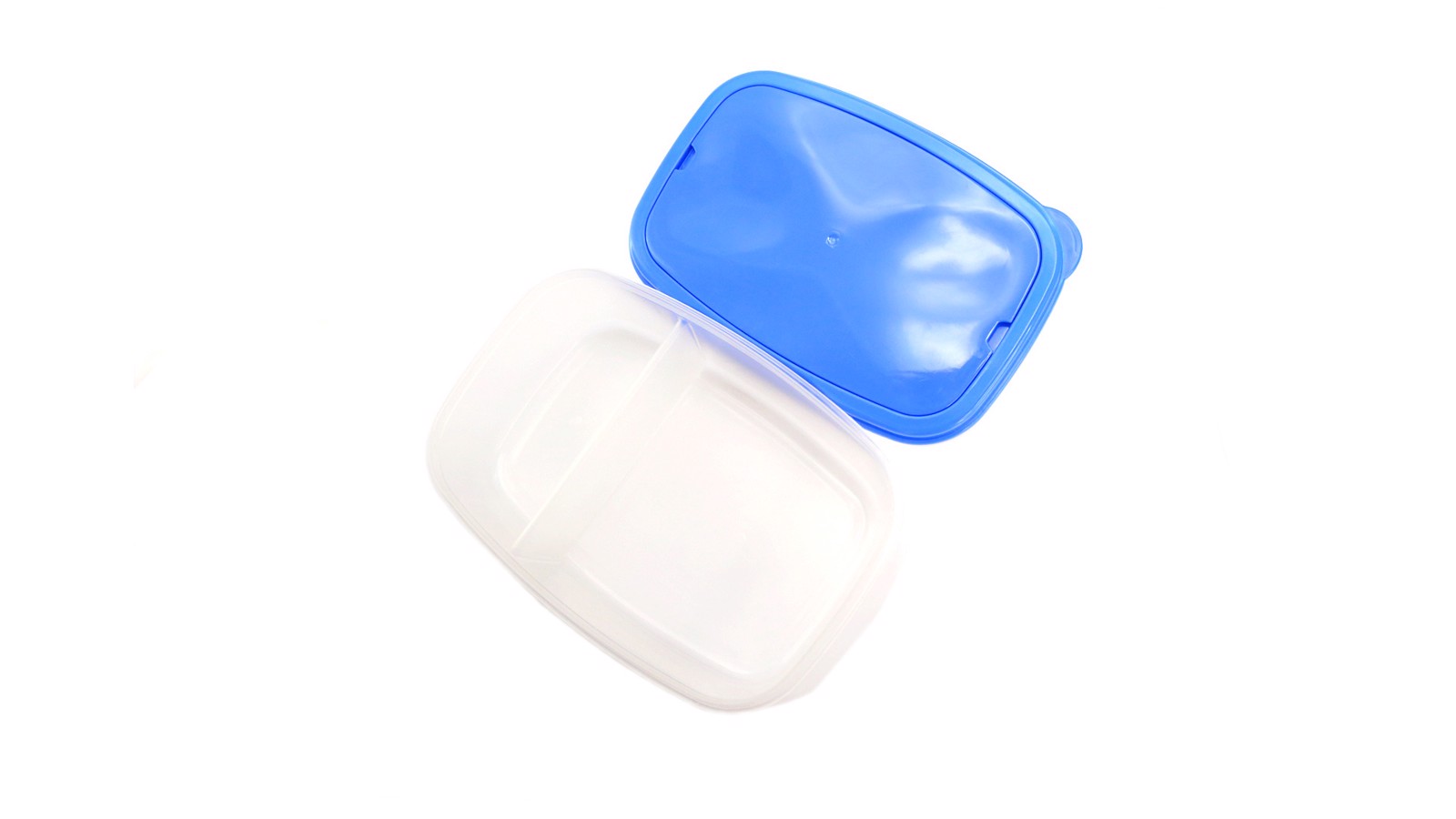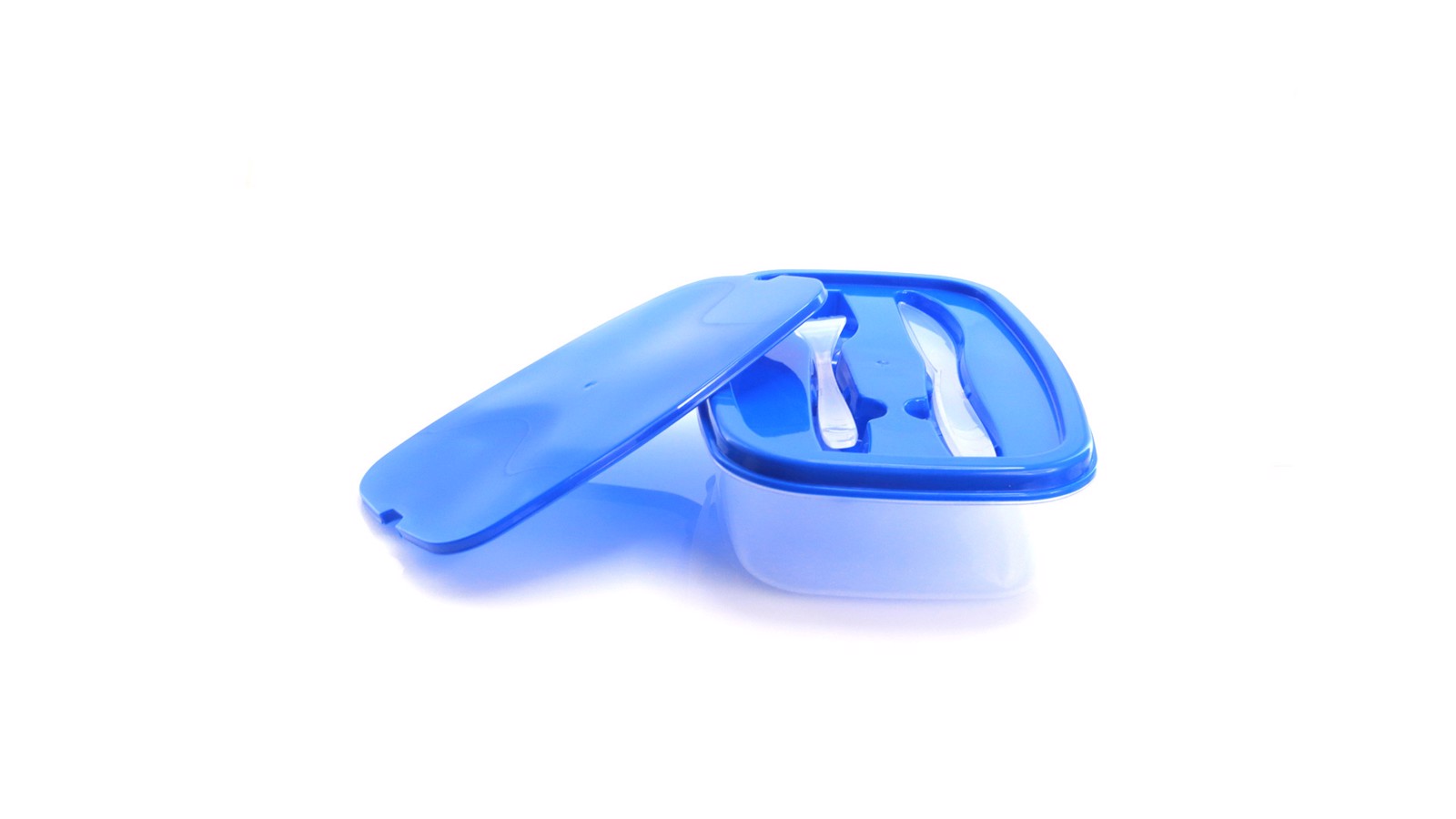 1000ml capacity lunch box in PP material. With translucent body, inside with two compartments and cutlery holder cover -including knife and fork- in a wide range of tones. Suitable for microwave ovens, dishwashers and freezers. 1000 ml