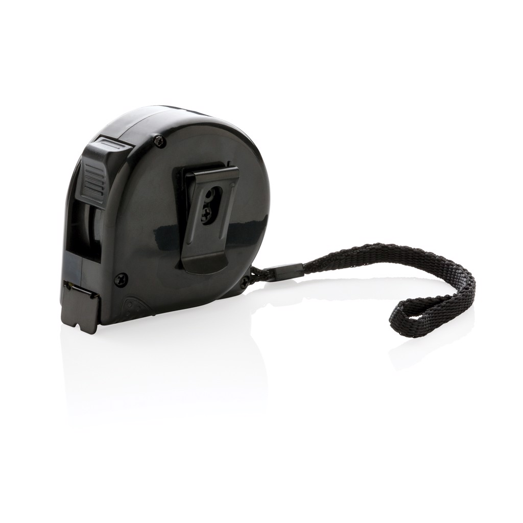 Compact ABS material tape with clip and wrist strap. 5 metre/19mm tape with hook.