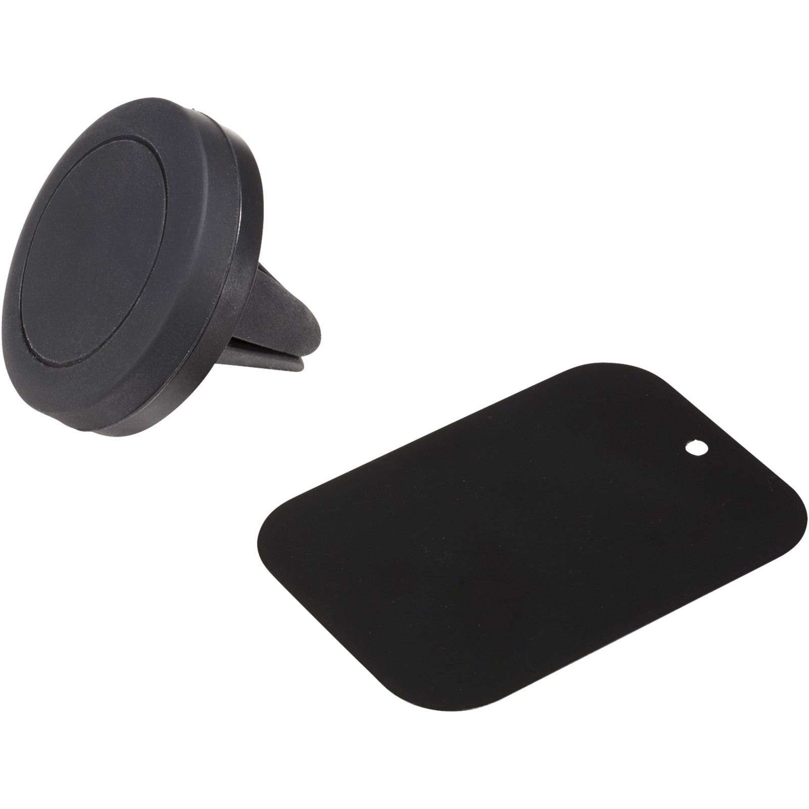 This magnet phone holder is functional for use in your car. It holds your phone securely while driving. The holder consists of 2 parts: a metal plate and a phone holder. The phone holder features 4 built-in magnets and can be easily plugged into the air vent of your car. The metal plate can be attached to the back of your smartphone or your phone cover. The size of the metal plate is 6.5 x 4.5cm.