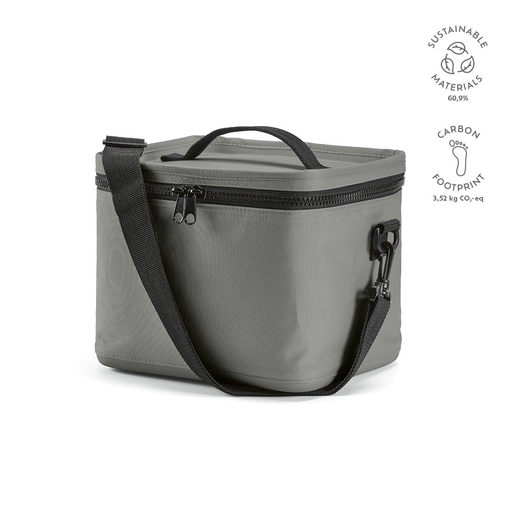 Munich 600D rPET 10L cooler, crafted from recycled materials. The wide opening, double way thermo injection zippers and insulation body ensure temperature retention. Plus, the addition of the shoulder strap improves your comfort. Suitable for 14 cans.