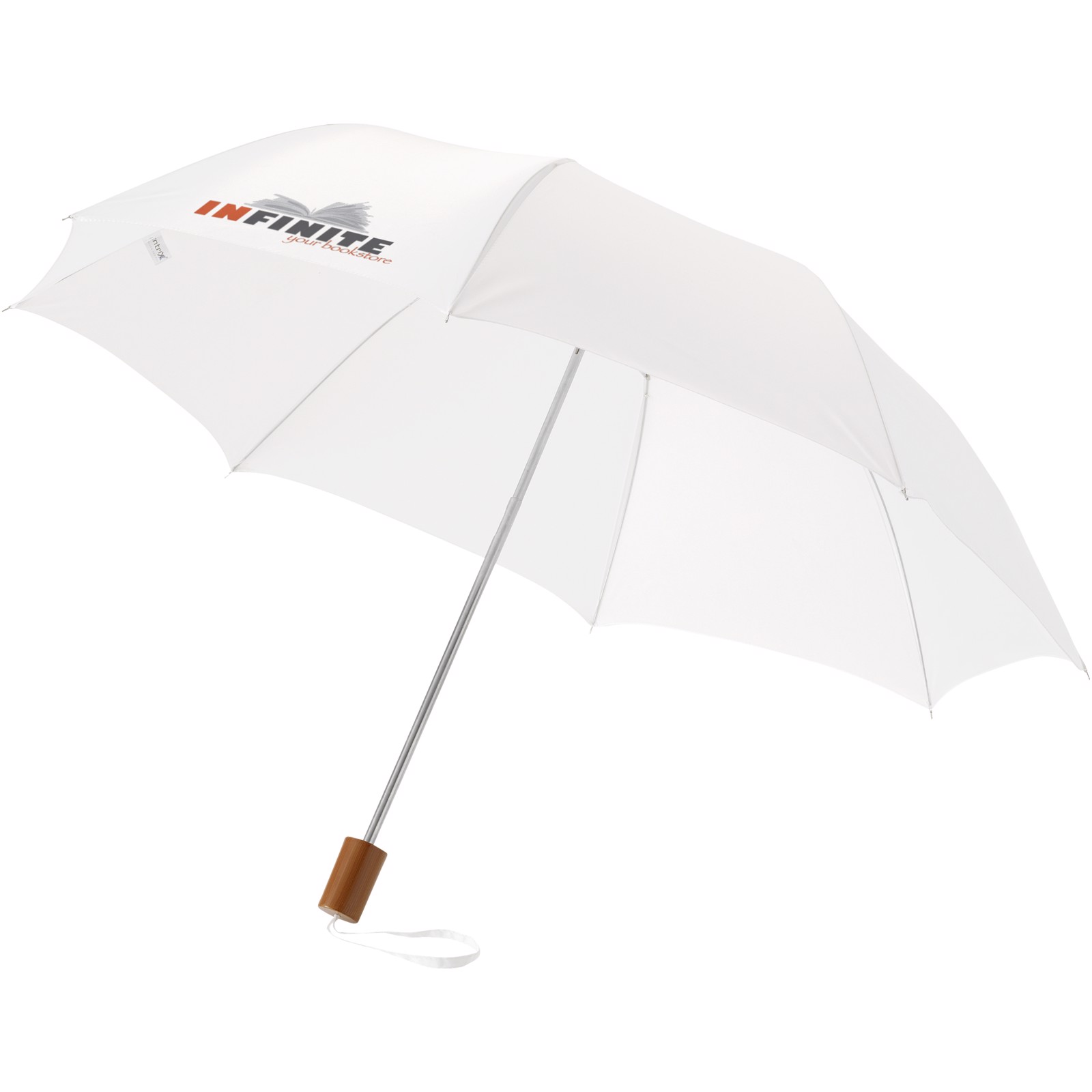 Easy to store, that is certainly the case with the Oho 20\" umbrella. The umbrella is foldable and comes with a pouch that protects the item when stored. This budget-friendly umbrella has a metal frame and a small, lightweight handle that fits well in any hand. Thanks to it's size when folded it will fit perfectly in a (hand)bag. The Oho umbrella is made of durable polyester, is suitable for multiple printing options and is available in different colours.