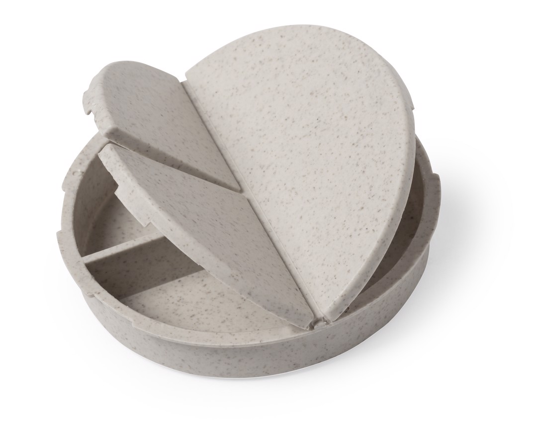 Pillbox in nature line, made of bamboo fibre, with 3 compartments and safety closure. 3 Compartments