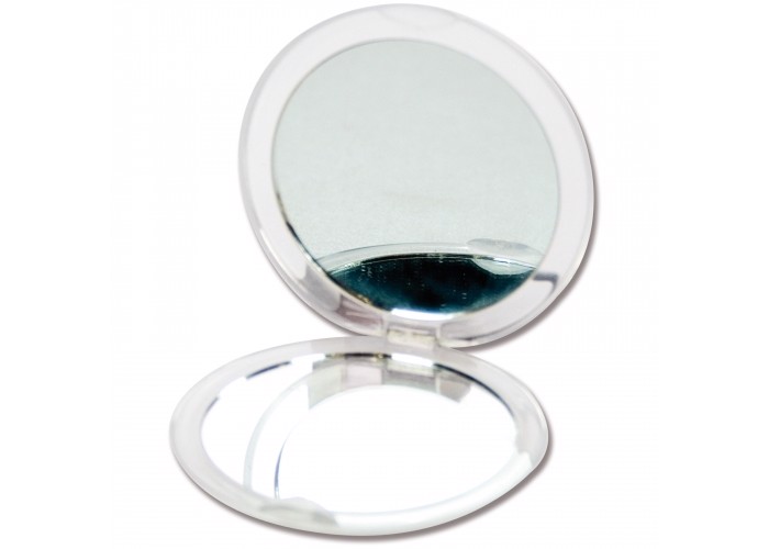 Compact duo pocket mirror with a normal and a magnifying mirror. Printing on both of the outer sides possible. Custom colours are available from 5.000 pieces with a delivery time of ten up to twelve weeks.
