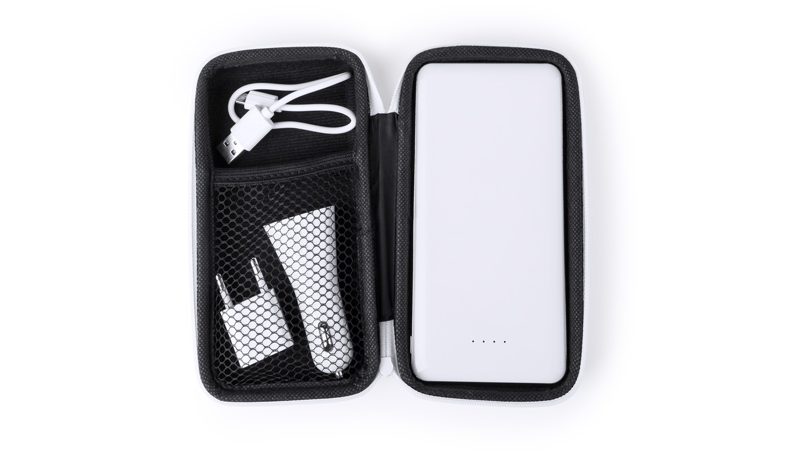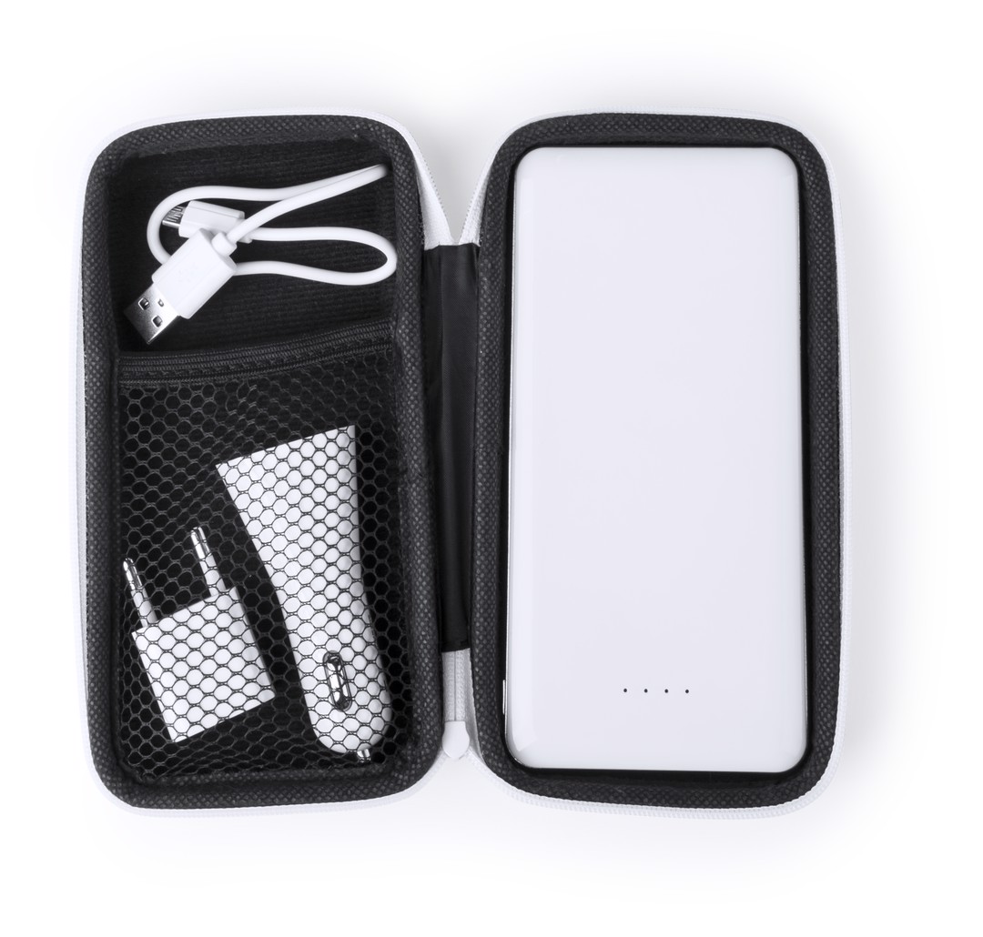 Set of high charging capacity external auxiliary battery, car lighter charger and wall charger. Power bank with 8,000 mAh and ultra slim design, 2,100 mAh car lighter charger with dual USB output, and 1,000 mAh wall charger. Presented in a stylish and resistant white PU leather case and including micro USB cable. The capacities shown in all our external auxiliary batteries are real, all of them incorporating non-recycled, grade A batteries, with a service life of at least 500 charging cycles, and complying with CE regulations. In addition, they are manufactured according RoHS standards, and in compliance with the following safety requirements: Power bank overcharge protection system. Complete discharge protection system, which increases the durability of the power bank. Blocking system to prevent short circuits. Constant charging transfer system, in accordance with the capacity of the target device. Power Bank 8000 mAh 2 USB Outputs Micro USB Input. Car Charger 2 USB Outputs 2100 mA. U