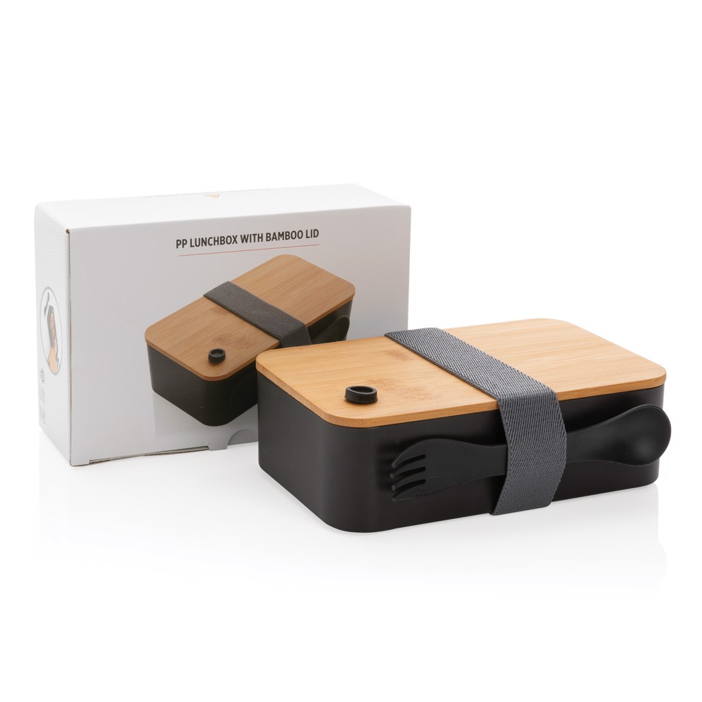 PP lunchbox with bamboo lid & spork