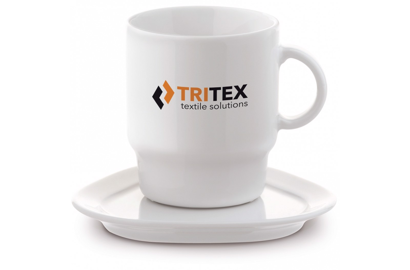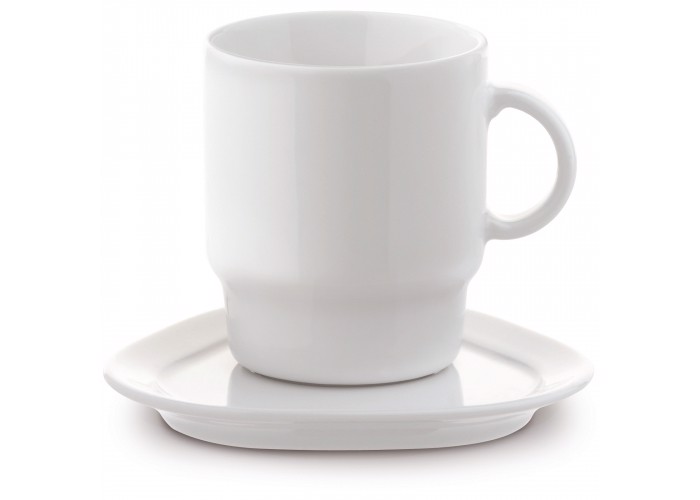 High quality porcelain cup and saucer from our Toppoint design 'Satellite' series. The cup is stackable. The cup offers a large imprint area and the saucer can be printed too.