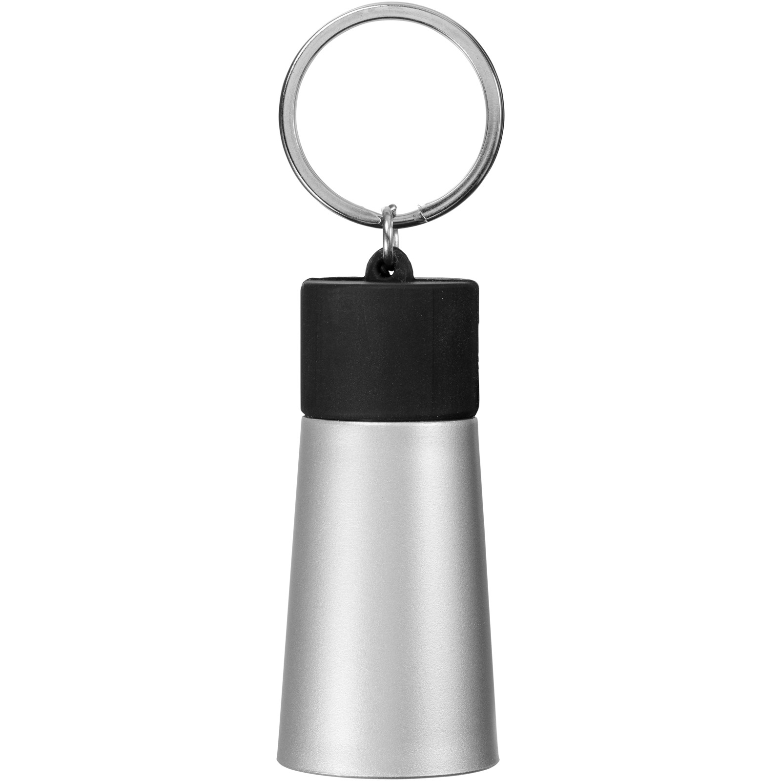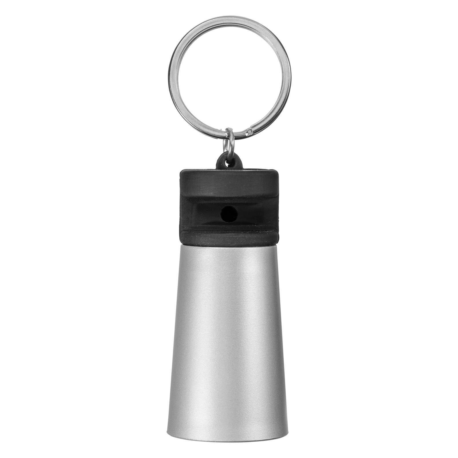 Sonic amplifier and smartphone stand. Handy media stand with built-in sound amplifier on metal split key ring. Compatible with iPhone® series devices. Packed in a joined bubble bag. ABS Plastic, TPU Plastic.