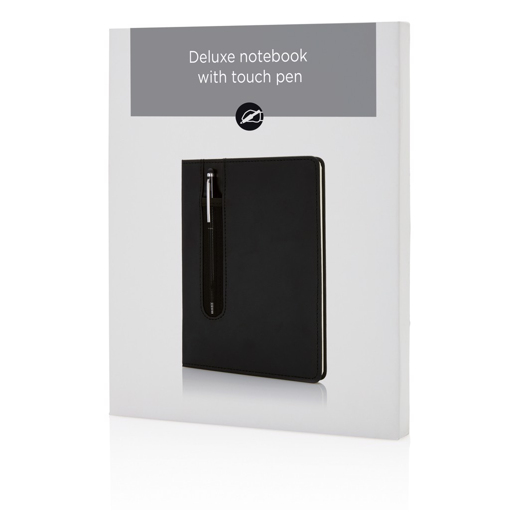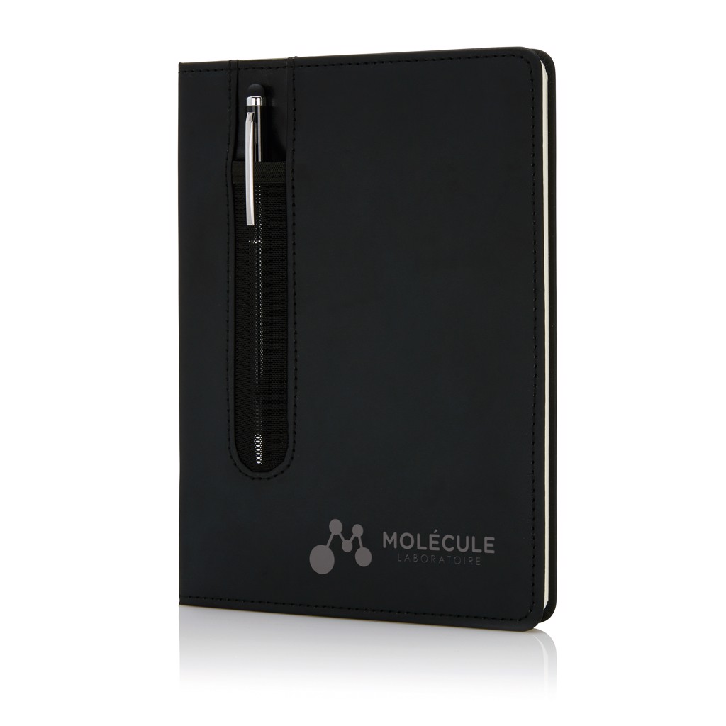 Standard hardcover PU A5 notebook with stylus pen - Black