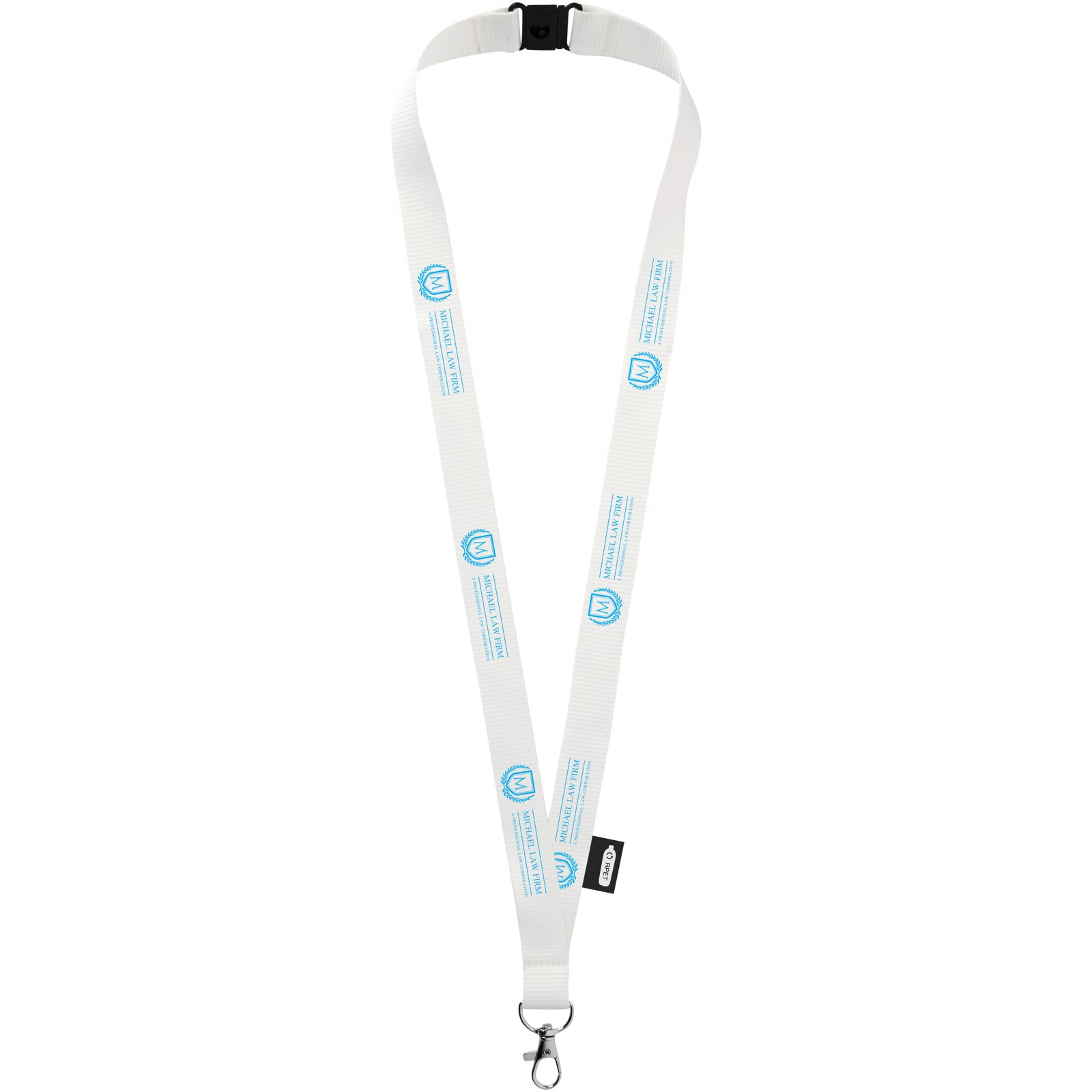 Recycled PET lanyard with breakaway closure. High quality oval hook with lobster clip that is ideal for holding a name badge, ID card, or keys.