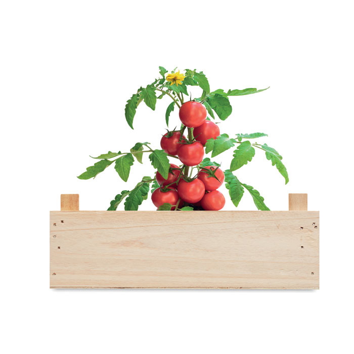 Tomato growing kit in a wooden crate including garden compost. Made in EU. Not available for sale in the UK.