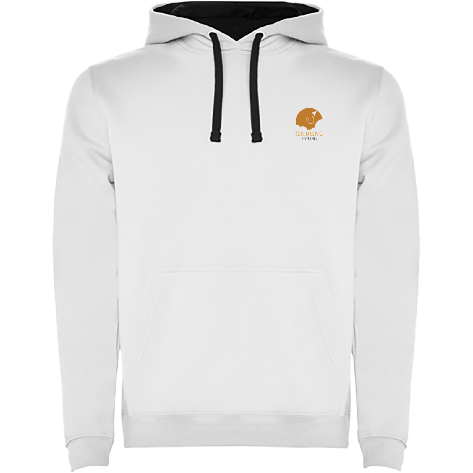 Two-colour hoodie with double fabric. Reinforced covered seams in collar and kangaroo style pocket. 1x1 elastane rib in cuffs and waistband. Removable label. The model is 120 cm and is wearing size 5/6.