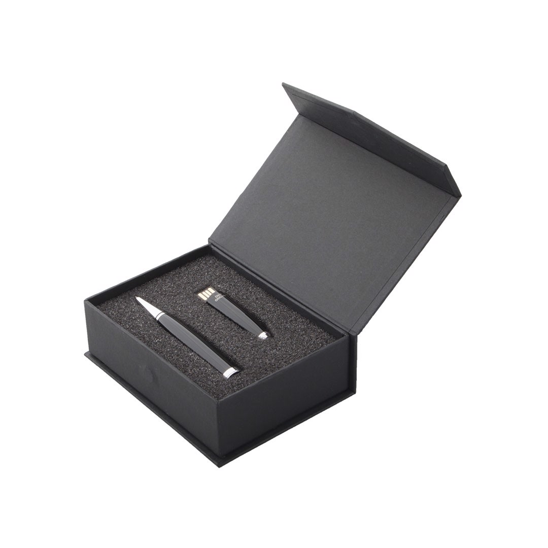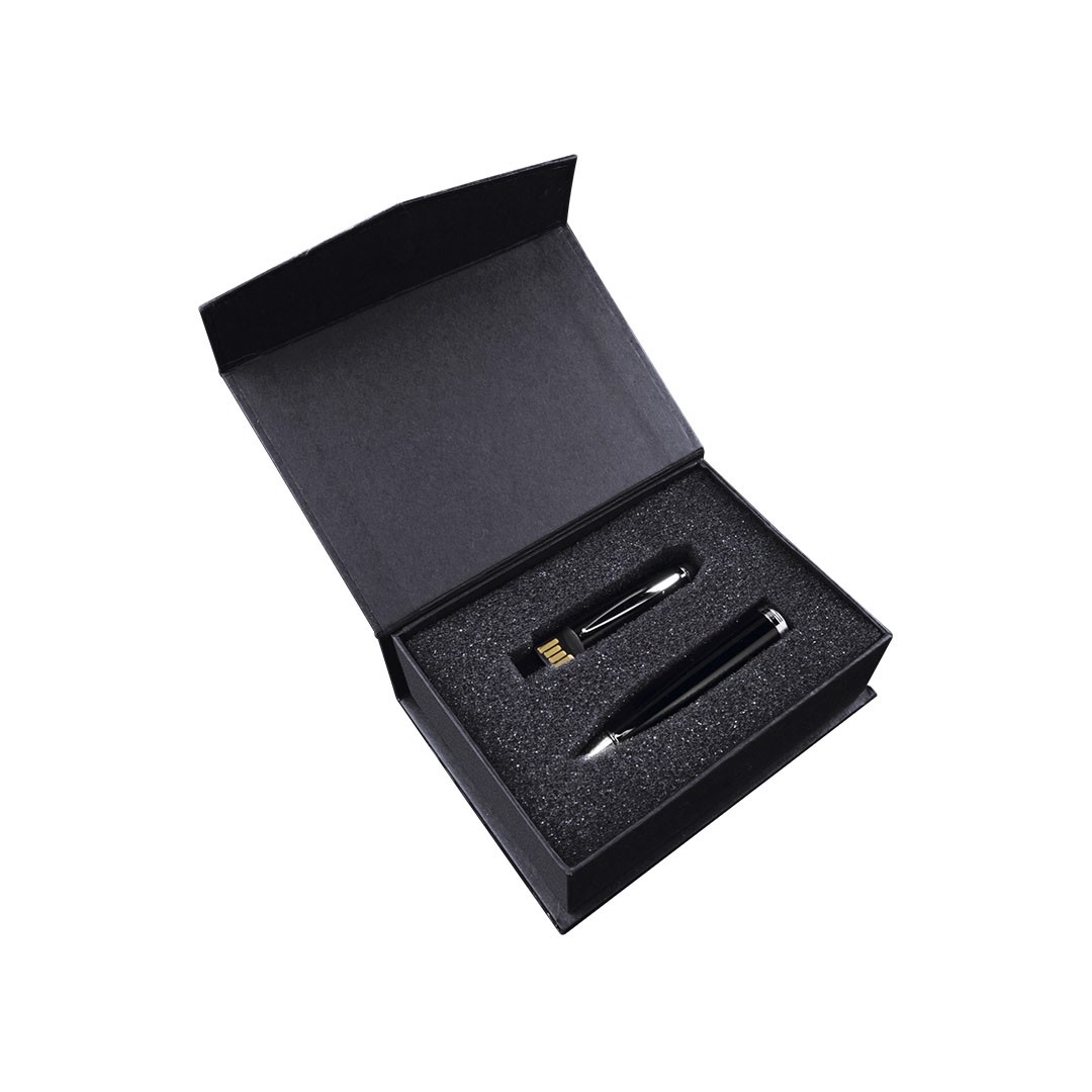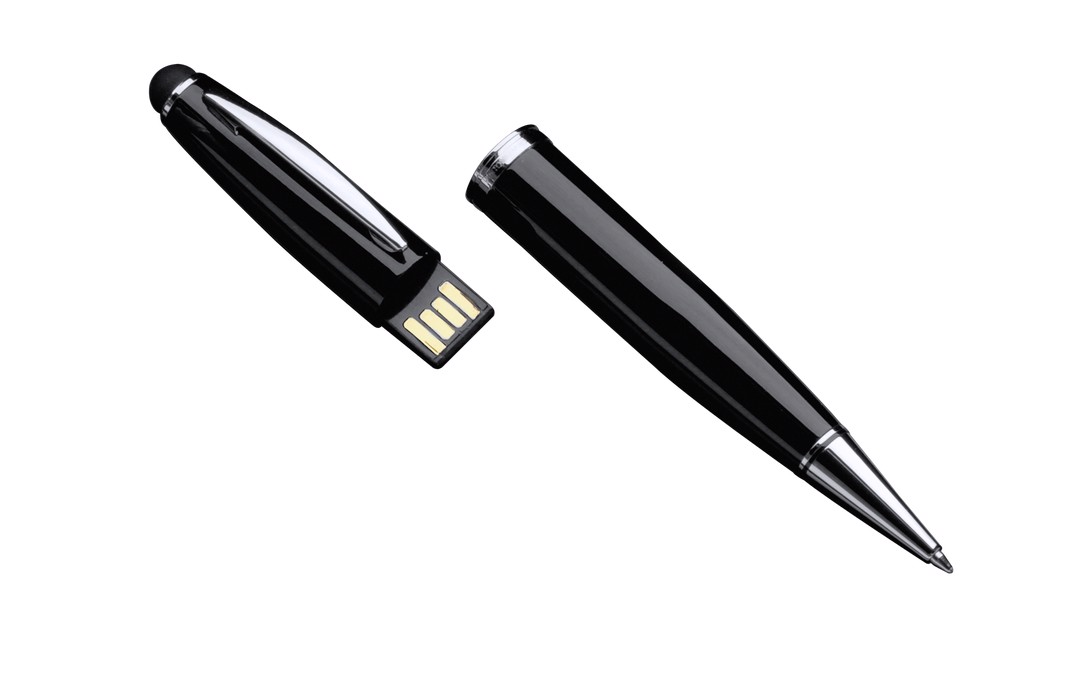 Pointer ball pen with removable 32GB USB flash drive. Stylish glossy metallic finish, integrates a removable USB flash drive into the hood with dual USB/micro USB connection. Compatible with Android devices and iOS devices via micro USB to Lightning adapter (not included). Presented in an attractive design box. Black Ink. Individual Presentation