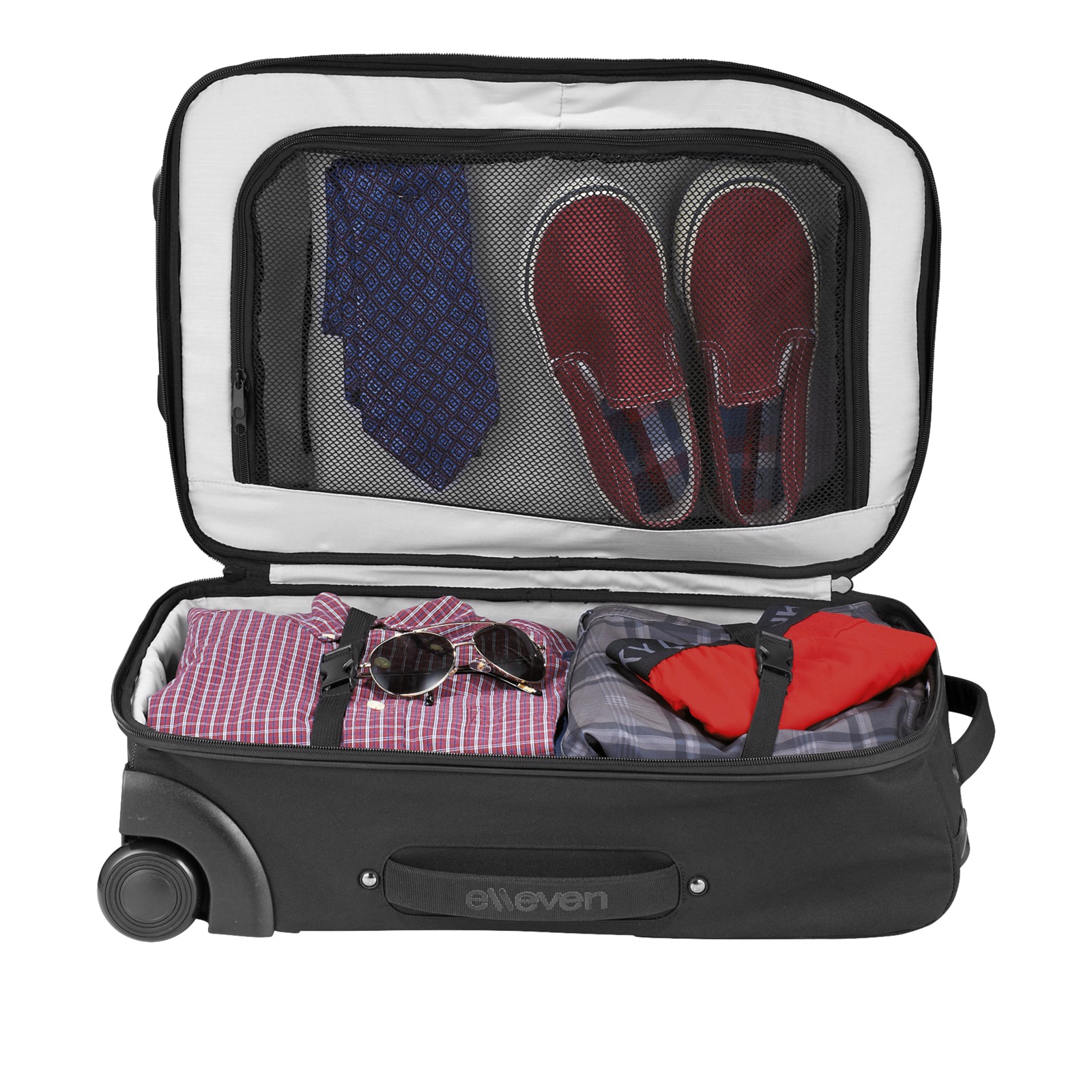 The Vapor 21" laptop rolling upright features a unique padded laptop sleeve that can be accessed from the top front panel. Lower front pocket has lined iPad/tablet pocket. Also features everything you would expect in a piece of luggage like corner mounted inline-skate wheels, telescoping handle, main compartment with tie-down straps and mesh divider for your laundry. Top front pocket has organization for all of your accessories. Bag has side, bottom and top grab handles to make it easier to carry in tight spaces.