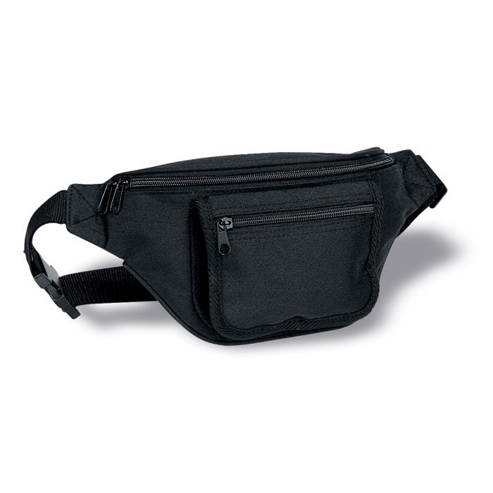 Waist bag with pocket for credit cards and pen. 600D polyester.