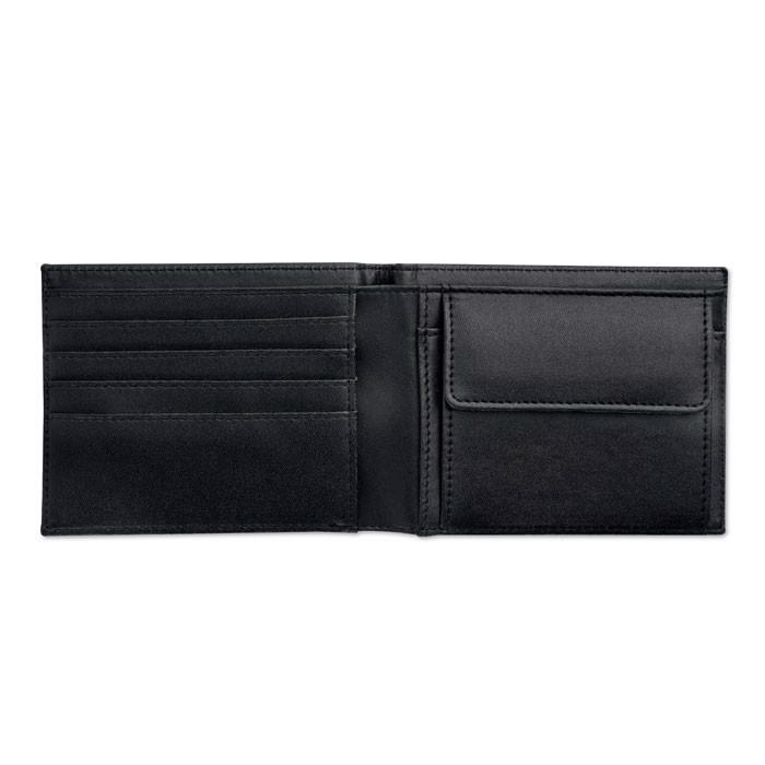 Imitation leather wallet with credit card, notes and coin compartments. Matt finish.