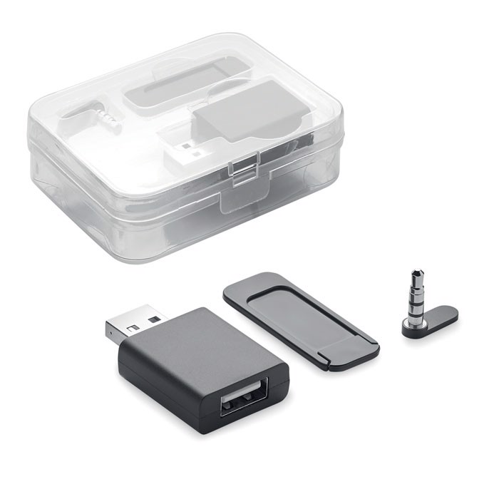 Set in PP case with webcam, data and audio blocker for jack plug.