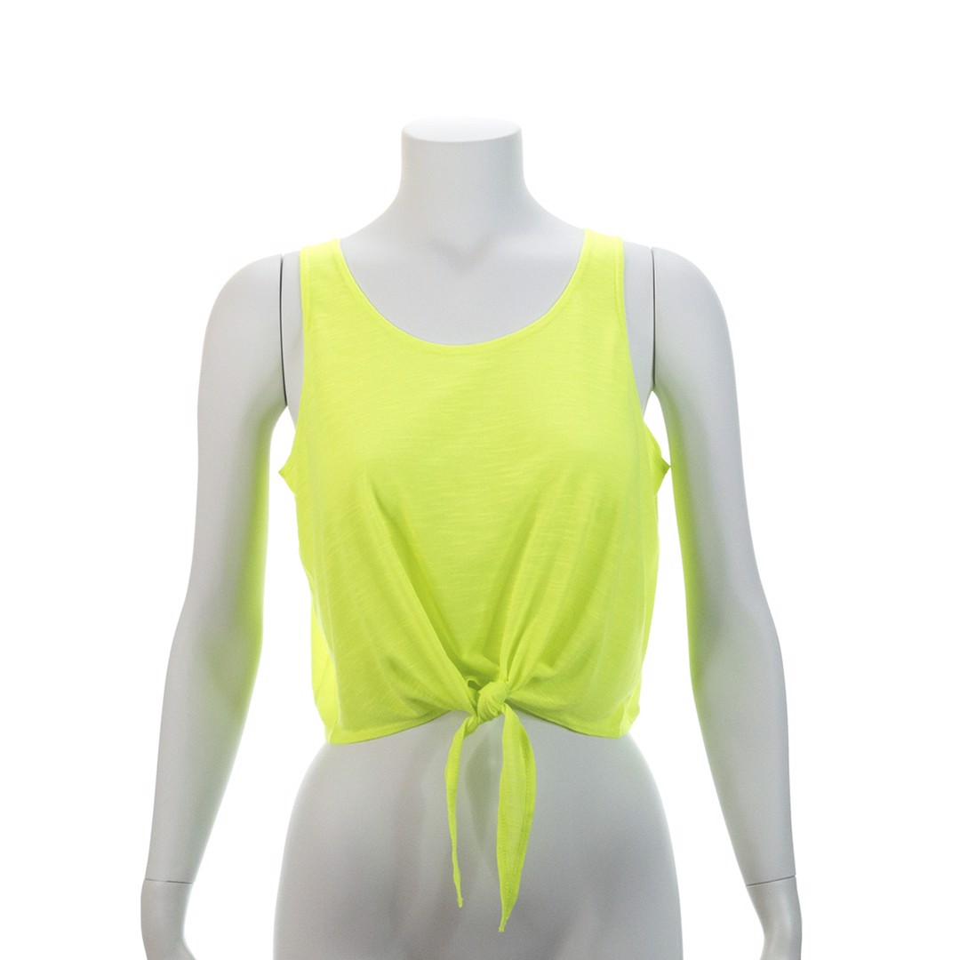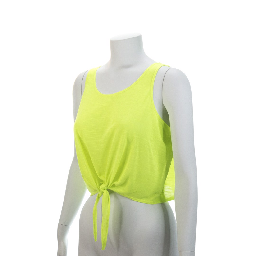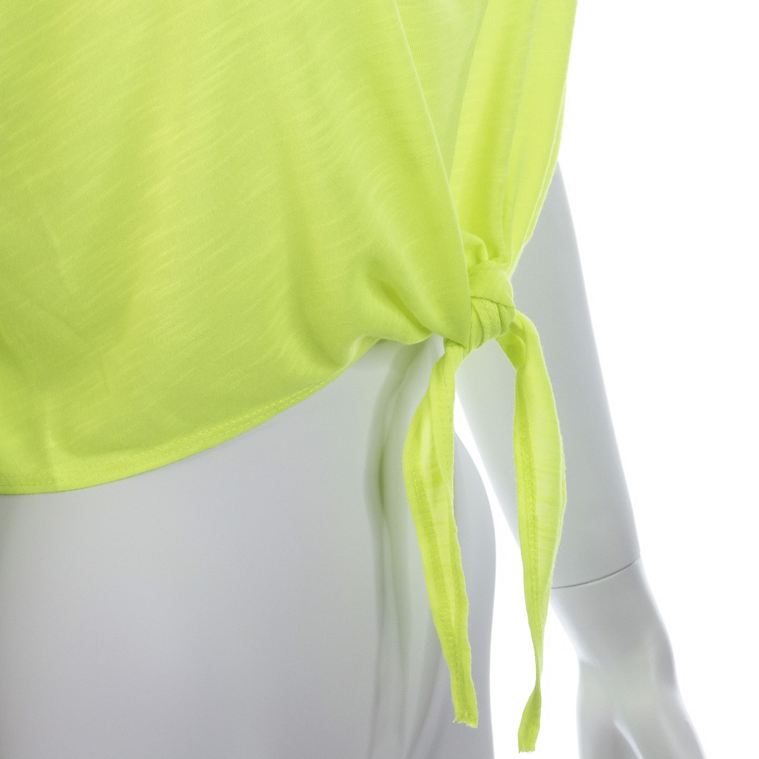 T-shirt for girl in soft polyester 130g/m2. With tie rod design and with knot front closure. Available in white and a wide range of bright fluorescent colors. Sizes S, M, L. Sizes: S, M, L