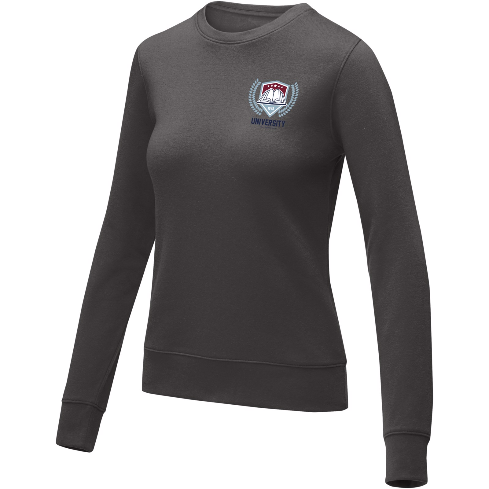 The Zenon women's crewneck sweater – combines comfort with a classic design. Made from a 240 g/m² blend of cotton and polyester. The classic crew neck design is accentuated by flat knit rib details on the collar, cuffs, and bottom hem, providing a snug fit and a touch of sophistication. Additionally, the interior custom branding options allow personalised branding or customisation inside the sweater. The brushed interior adds an extra layer of coziness, making it perfect for colder days. With its thoughtful design and quality materials, the Zenon sweater is a versatile essential that adds a dash of individuality to your look while ensuring maximum comfort. This sweater is designed with a fitted shape for a feminine look.