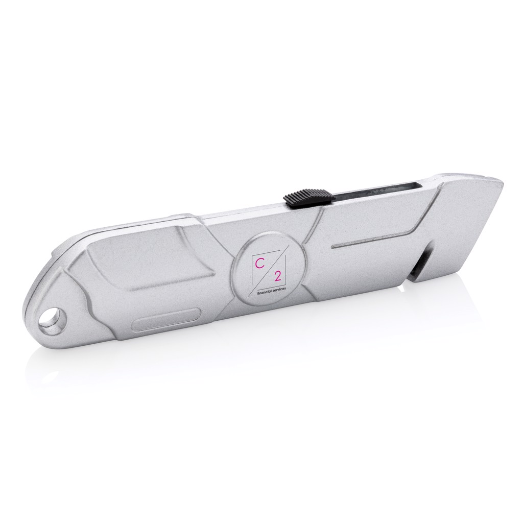 Heavy duty cutter made out of zinc alloy. WIth sliding button to make sure the knife is always retracted after usage. Including one extra 11-921 refill blade that is kept inside the body of the knife. Blades made of stainless steel.