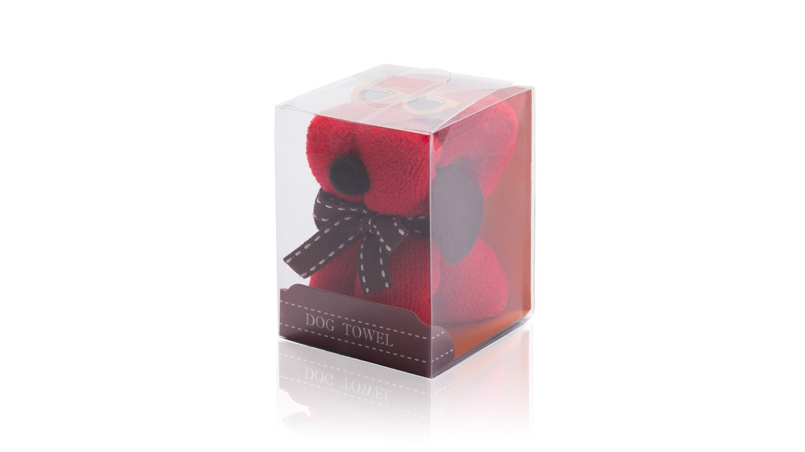 Cheerful dog towel in absorbent and soft microfiber of 310g/m2 and in vivid colors. Presented in a transparent, PVC, design case. Folded 6 x 8 x 6 cm