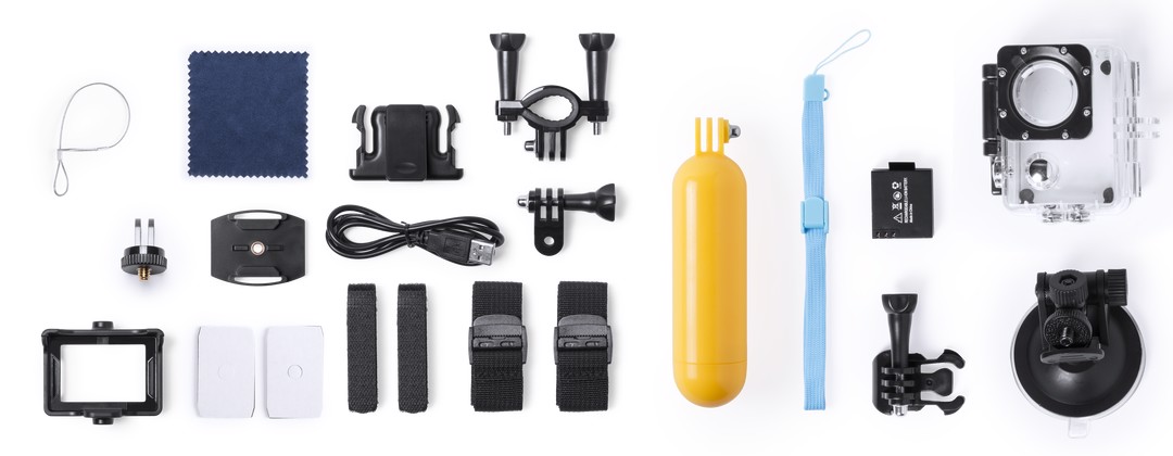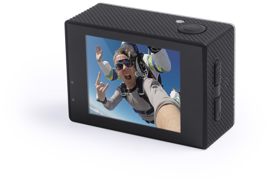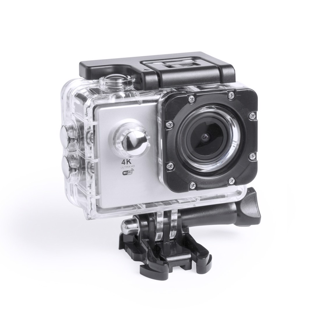 High quality sports camera with HD 4K video capture, compact and resistant design, especially designed for intensive use. Including submersible housing up to 30m depth and a wide range of accessories for adjustment in helmet, handlebars or belt, as well as adjustable straps for head and torso or a 360º twist adapter. The versatility and endurance of this sports camera make it the perfect gadget to capture, with exceptional quality, any sporting activity. With Full HD 1080p camera, micro SD card slot up to 64GB, 2 inches multi-language system LCD screen, and rechargeable via mini USB cable -included-. Presented in an attractive design box. 4K. Wifi. 2" LCD Screen. 16 Accessories. Multilingual. USB Rechargeable. Cable Include