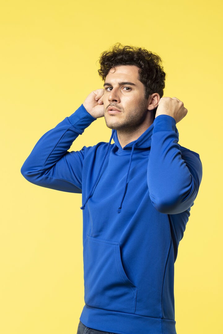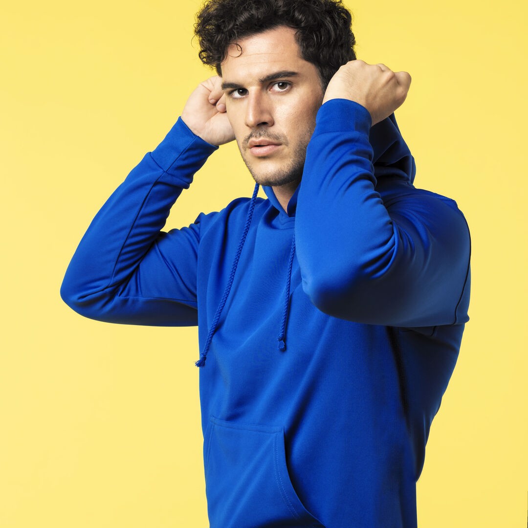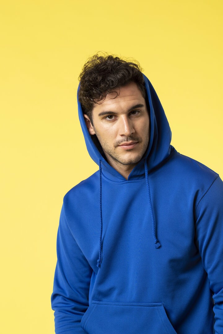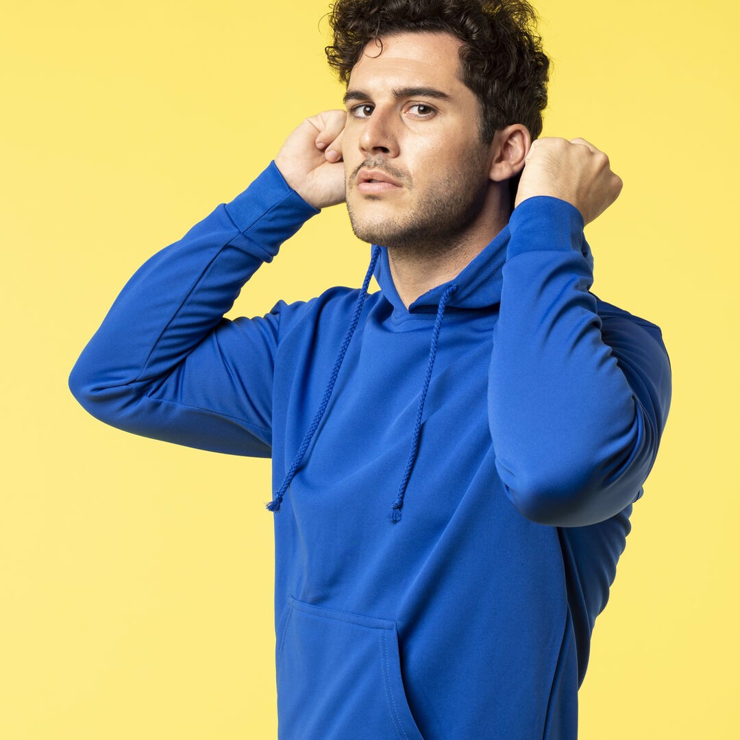 Unisex, technical sweatshirt for adults. In 100% polyester material of 265g/m2. With hood, adjusting straps and front pocket. Available in a wide range of bright tones. Sizes S, M, L, XL, XXL. Sizes: S, M, L, XL, XXL
