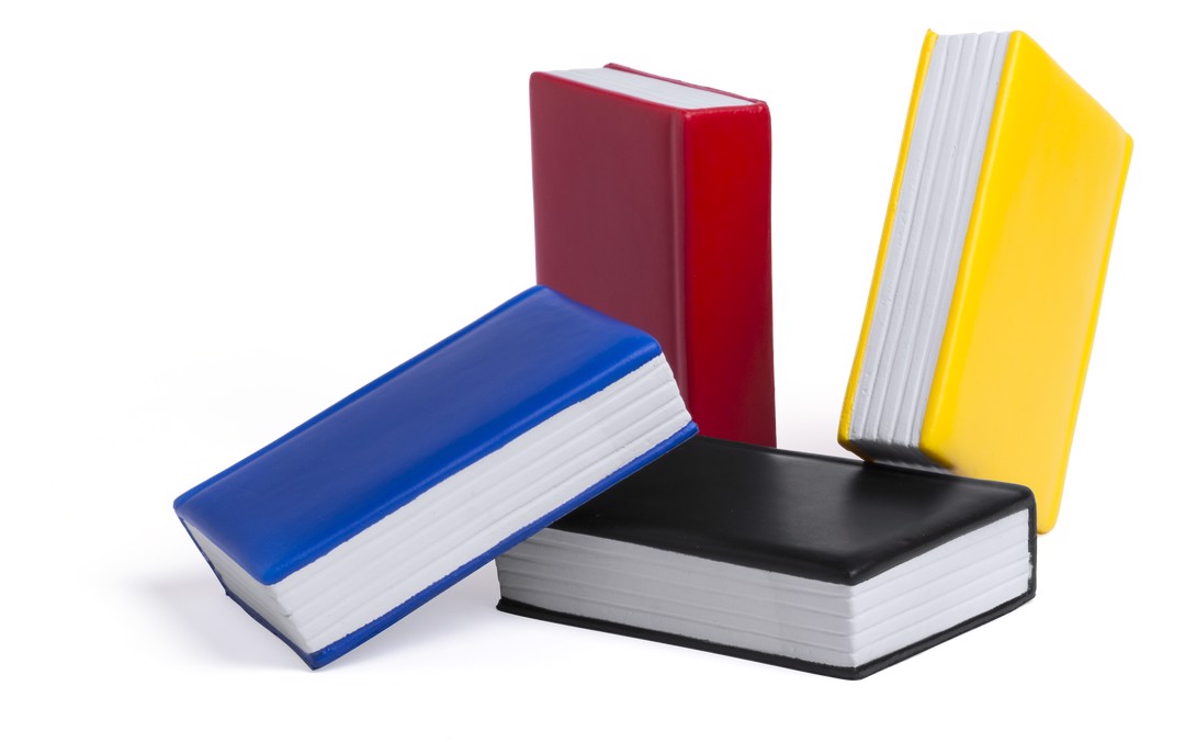 Anti-stress book in bright tones and soft body with shiny PU padding.