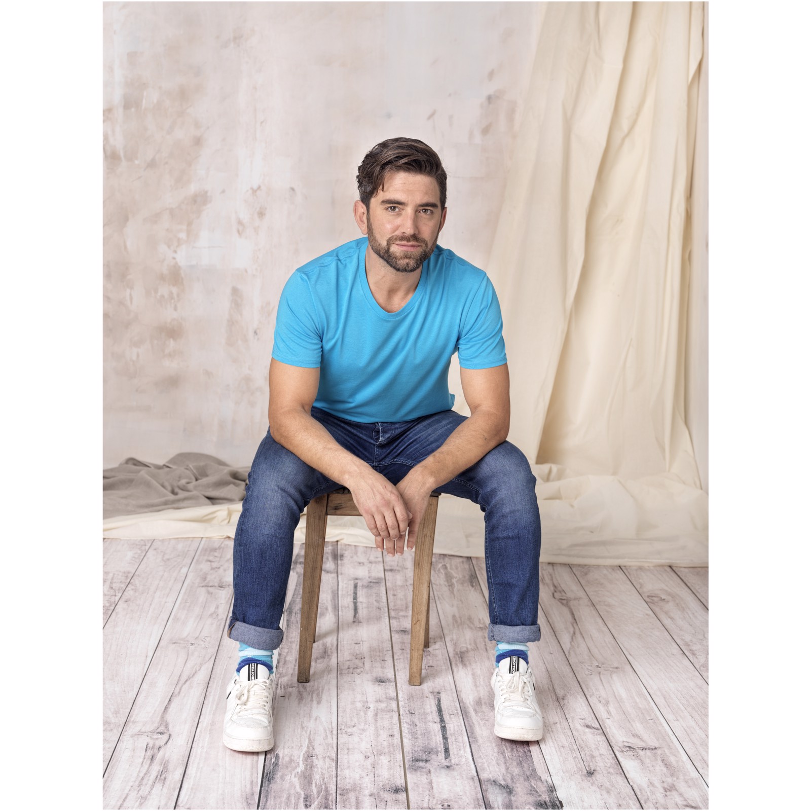 Udržitelné propagační oděvy. Kulatý výstřih. Boční švy. Dvoubarevná značková páska od ramene k rameni. Plochý žebrový límeček. Dvojité stehování. Potisk štítku technologií heat transfer pro větší pohodlí.