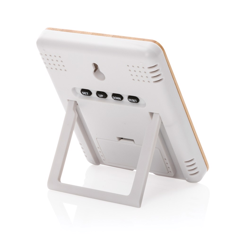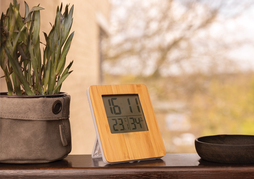 Meteorologická stanice se 3 funkcemi: čas/datum, vnitřní teplota a vlhkost (tolerance +- 5%). Vyrobeno z bambusu a ABS. Včetně 2 AAA baterií pro přímé použití.