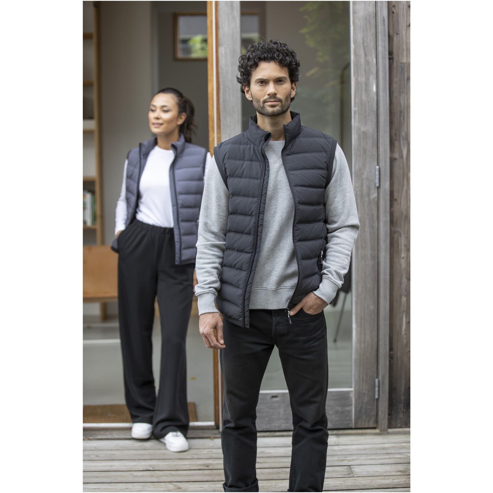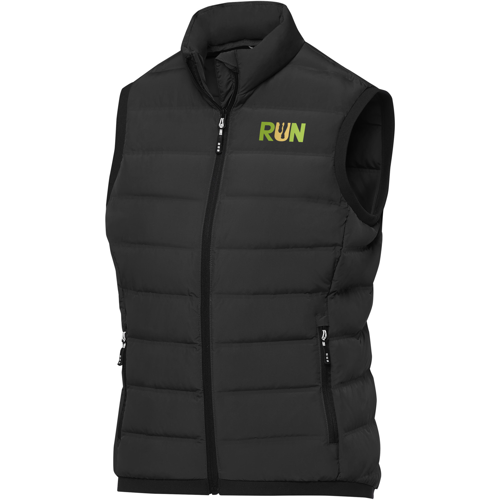 The Caltha women's insulated down bodywarmer – a versatile and eco-friendly outerwear piece. Made of 164 g/m² 750T woven double layer pongee fabric in polyester. The matte fabric in combination with heat seal quilting gives the bodywarmer a modern look while enhancing the overall insulation. Embrace eco-consciousness with RDS certified recycled down insulation of recycled down and recycled feathers, providing warmth without compromising on ethical standards. With an inner storm flap, chinguard, and flat knit elasticated rib cuffs, this bodywarmer offers maximum protection against the elements. The front pockets with zipper closure add convenience and functionality. Embrace both style and ethical values with the Caltha bodywarmer, perfect for any outdoor adventure or daily wear. This bodywarmer is designed with a fitted shape for a feminine look.