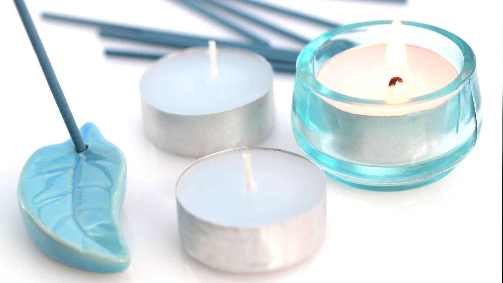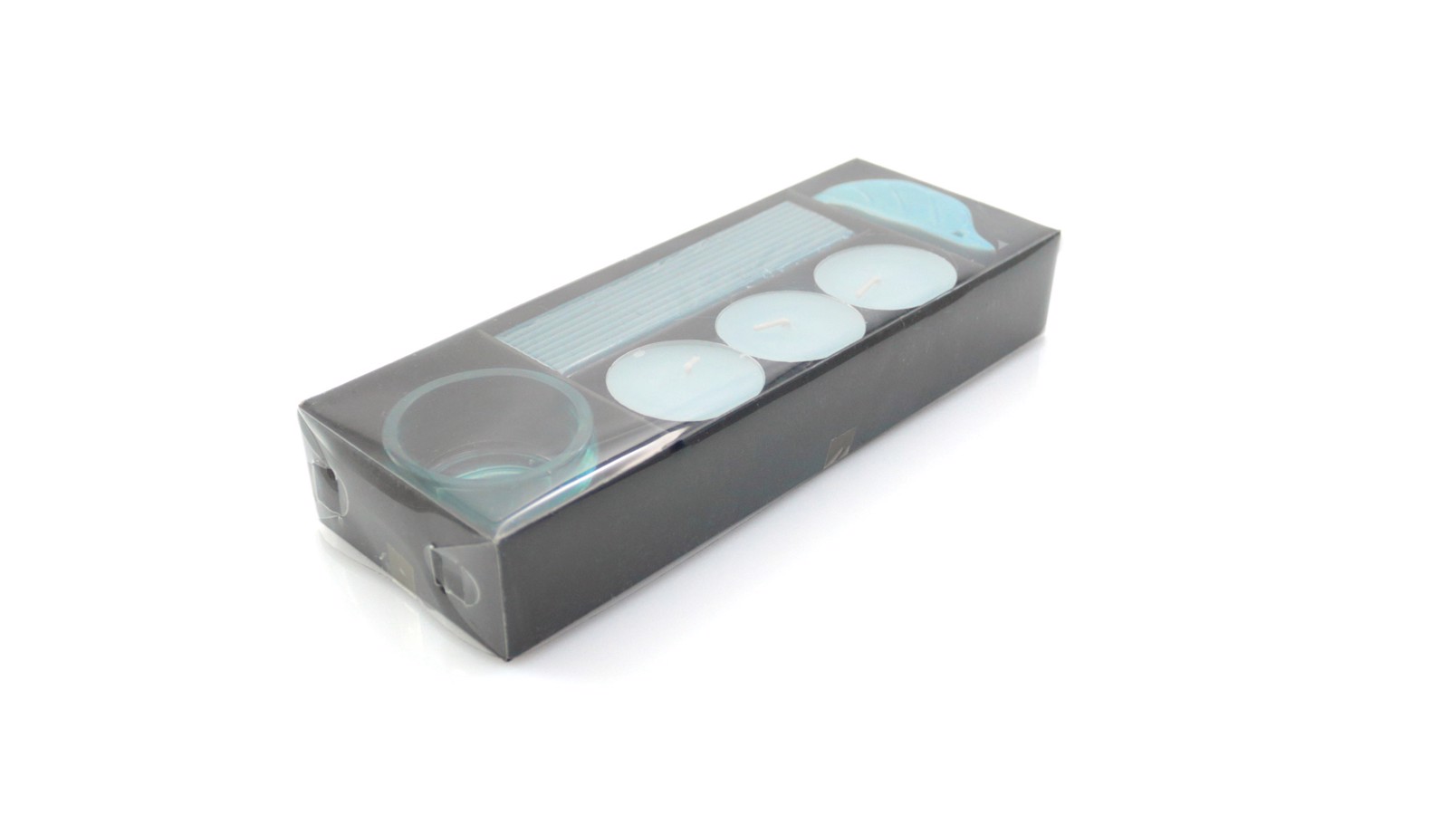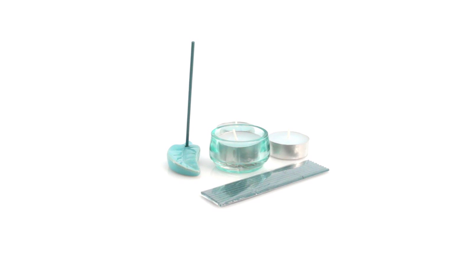 Set of candles and incense in bright tones. Includes ceramic burner, incense sticks, 3 scented candles and candle holder. Available in strawberry and ocean fragrances. Presented in an individual case with separate compartments and transparent cover. Aromatic