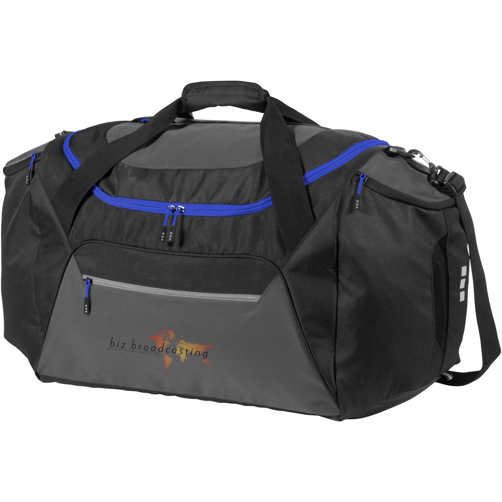 Exkluzivní design. Velká cestovní taška s nastavitelným ramenním popruhem, dvěma velkými bočními přihrádkami, velkým předním prostorem na zip a kapsičkou na zip v horní části.