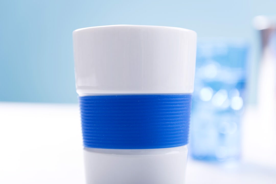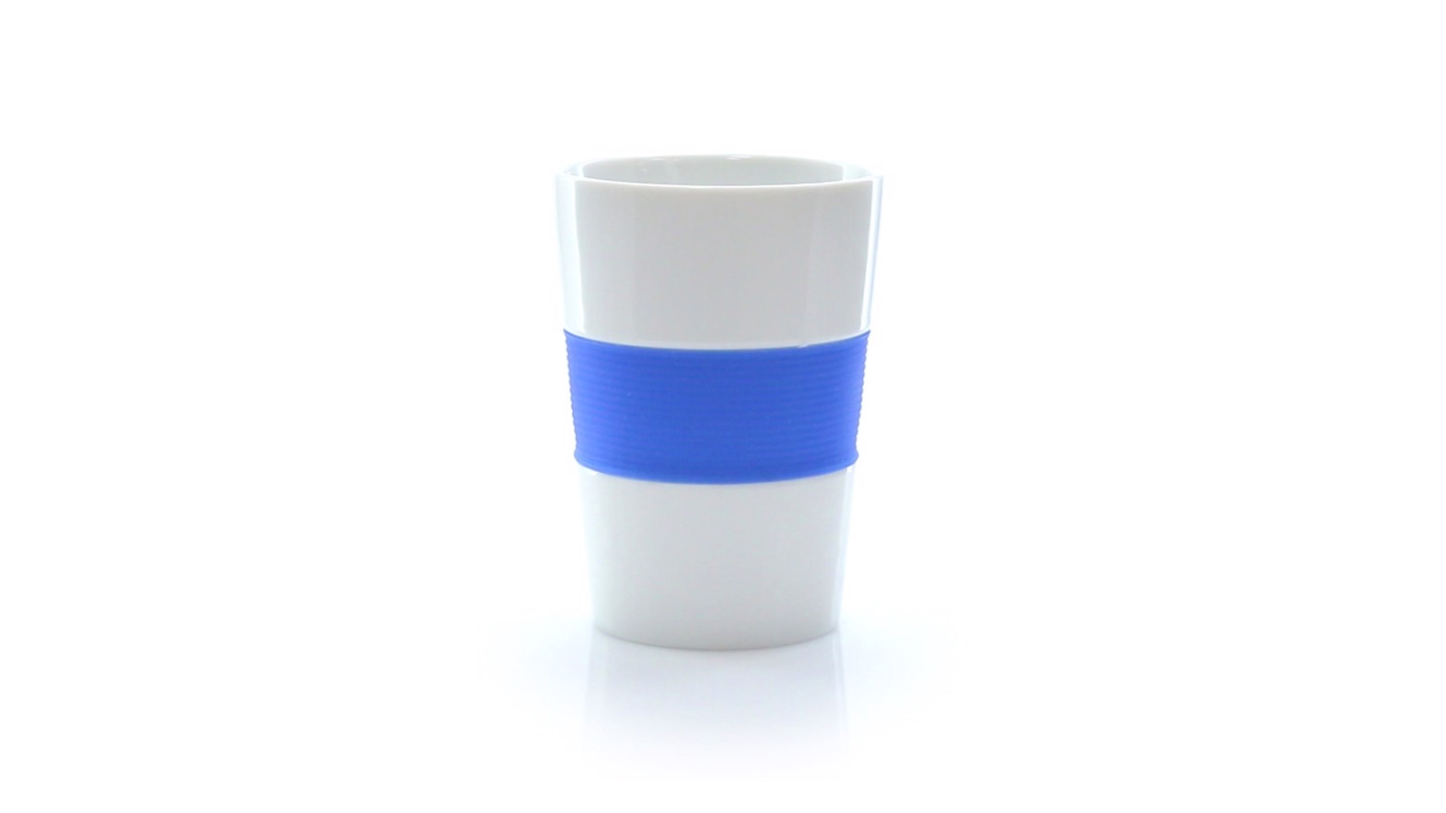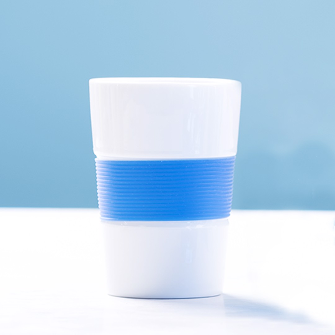 350ml ceramic cup in white color, with silicone strap in a fun range of bright tones. Presented in an individual box. 350 ml. Individual Presentation