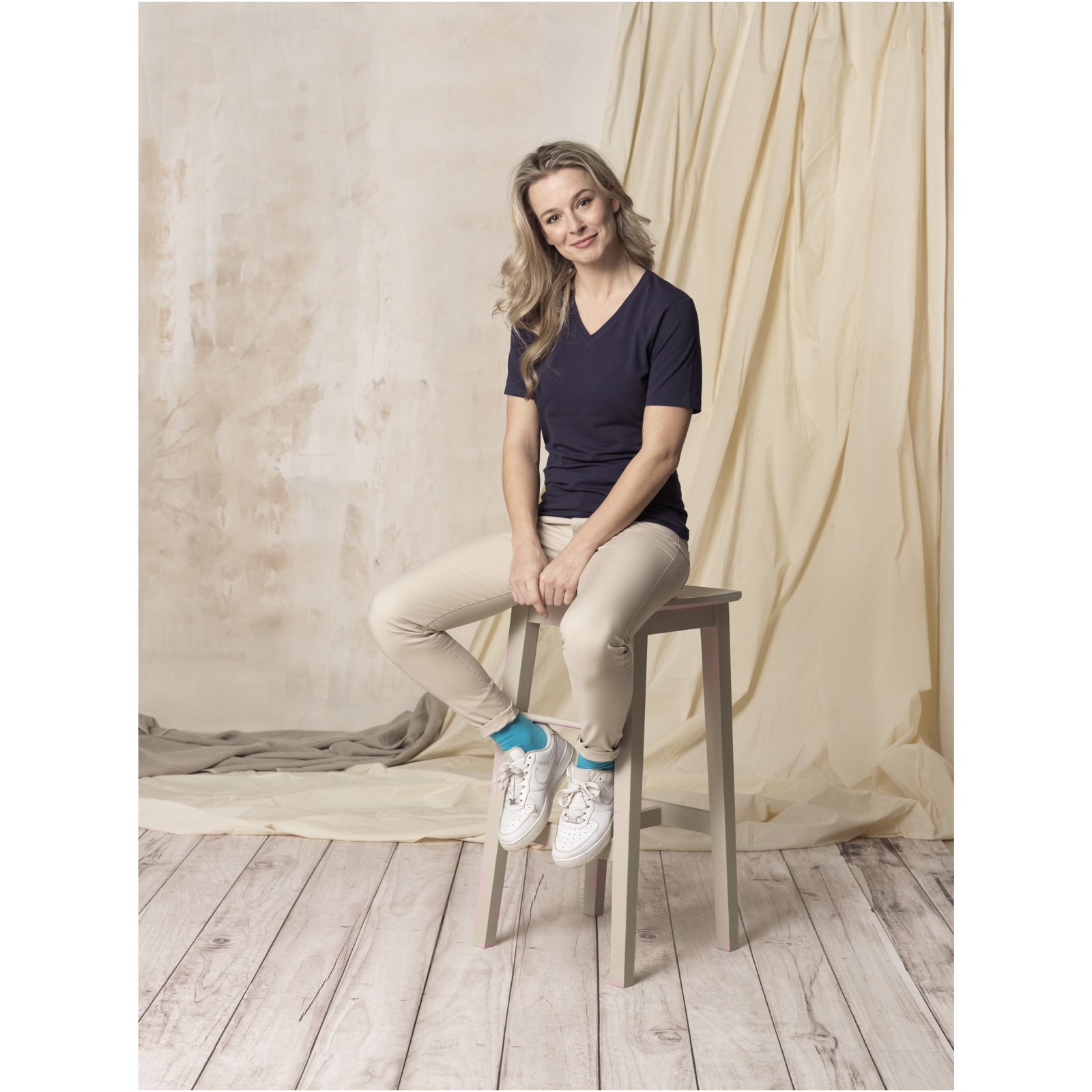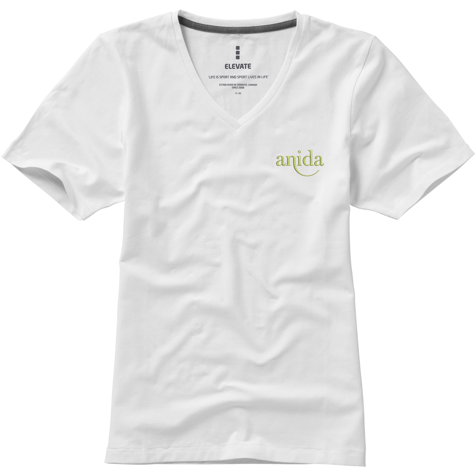 Kolárek ve shodné tkanině. Výstřih ve tvaru V. Stretchová látka. Detaily s vybraným stehem. Hedvábný průramník. Potisk štítku technologií heat transfer pro větší pohodlí.